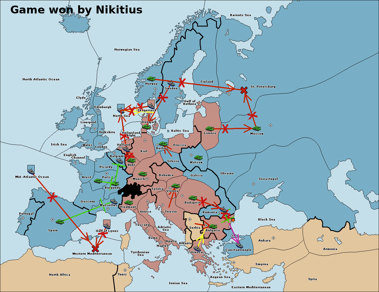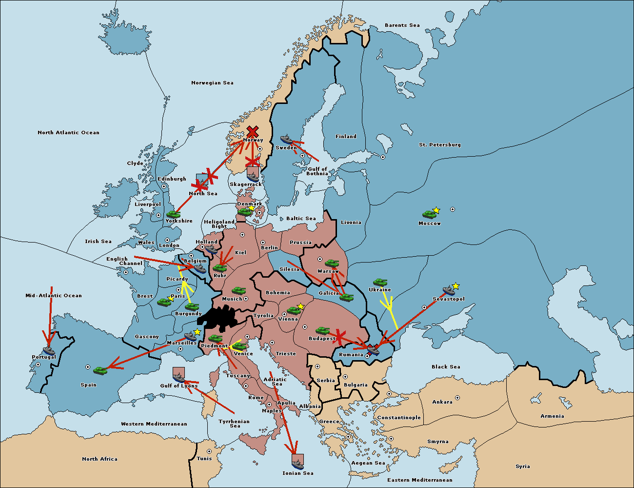 The fleet at Mid-Atlantic Ocean move to Western Mediterranean.