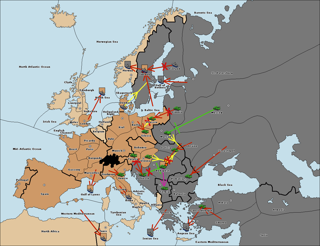 The fleet at St. Petersburg (South Coast) move to Finland.
