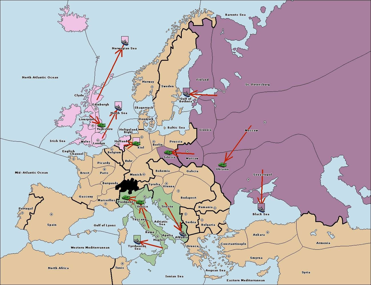 The fleet at Bulgaria (North Coast) move to Constantinople.