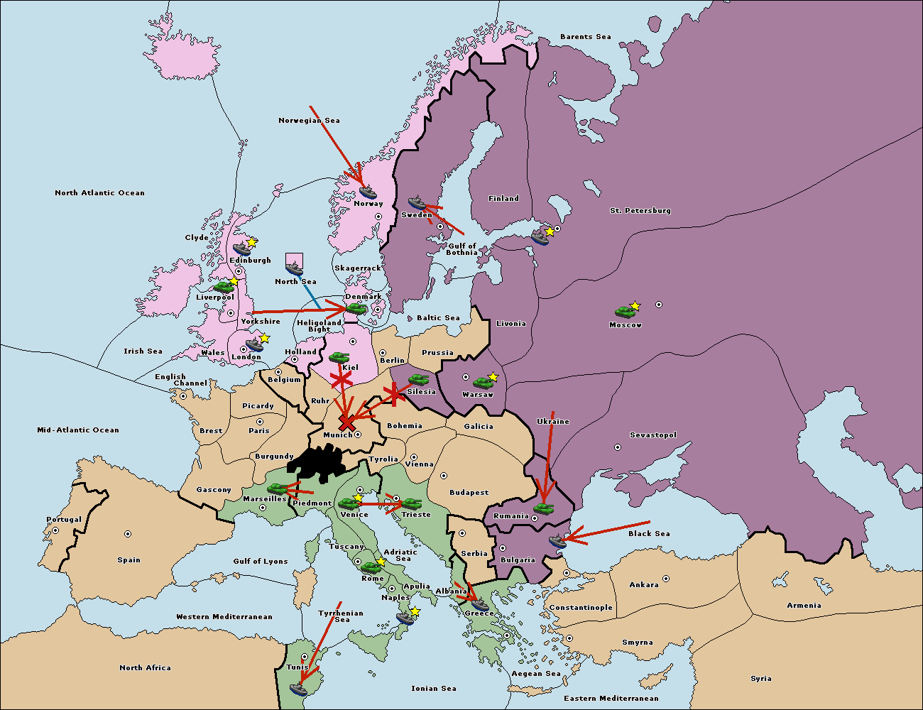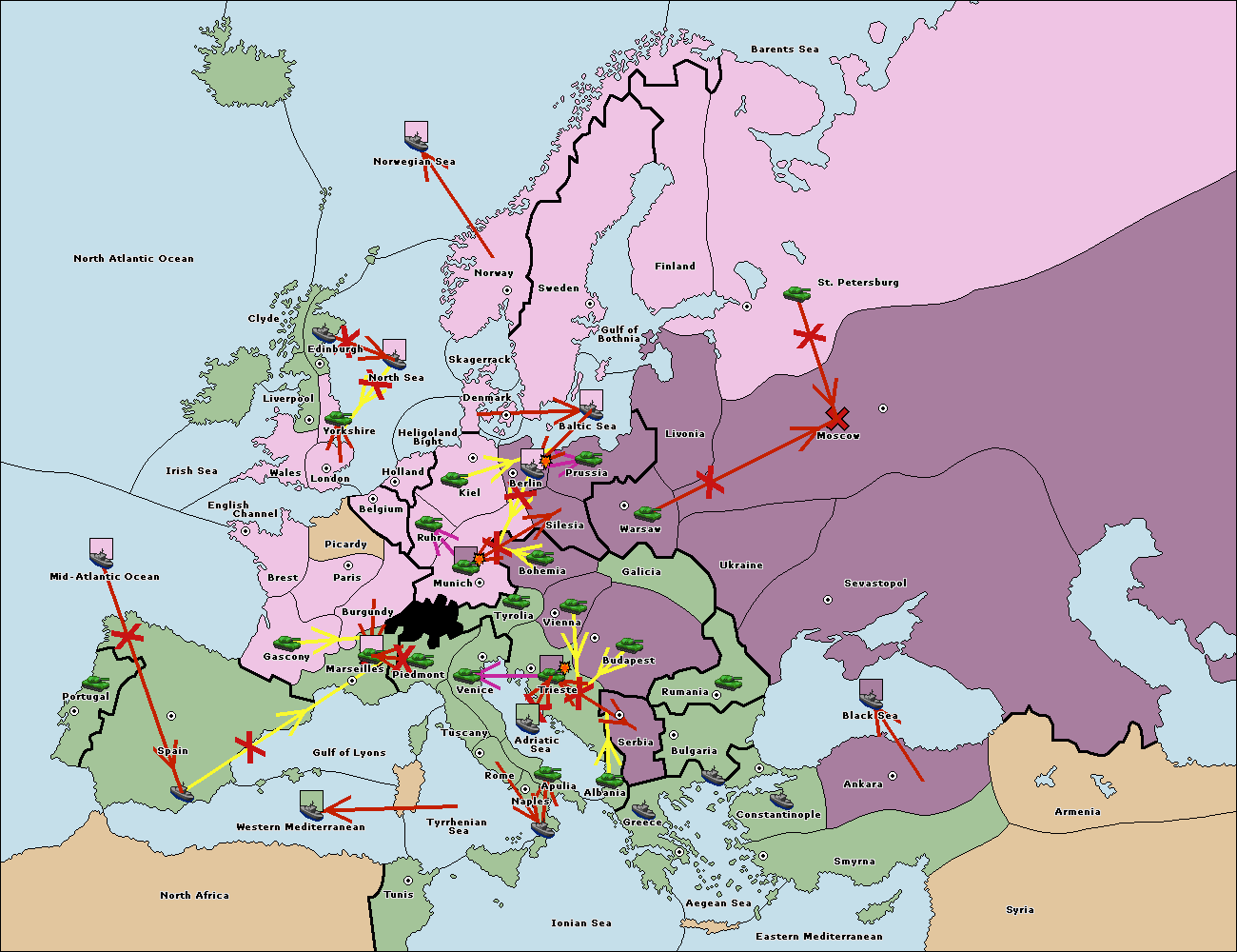 The fleet at Spain (South Coast) support move to Marseilles from Piedmont.