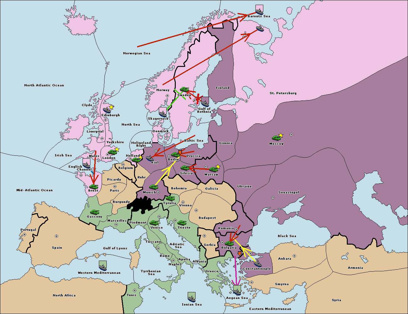 The fleet at Bulgaria (South Coast) retreat to Aegean Sea.
