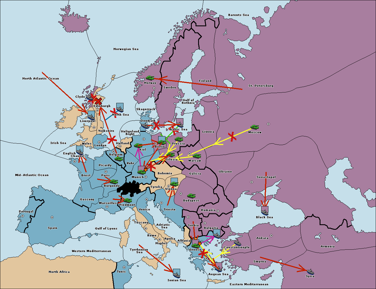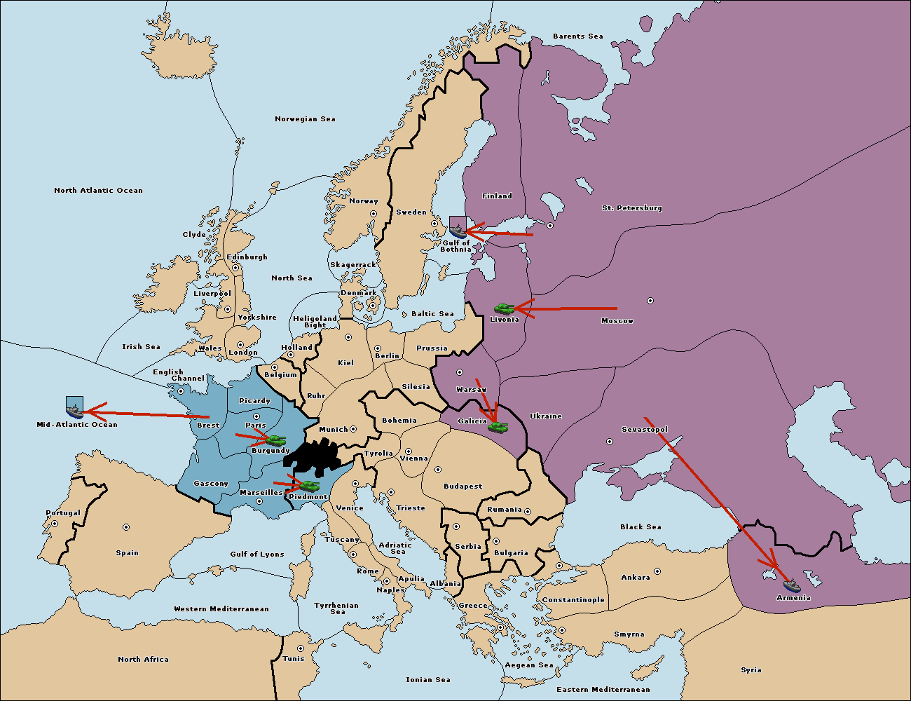 The fleet at Bulgaria (South Coast) move to Aegean Sea.