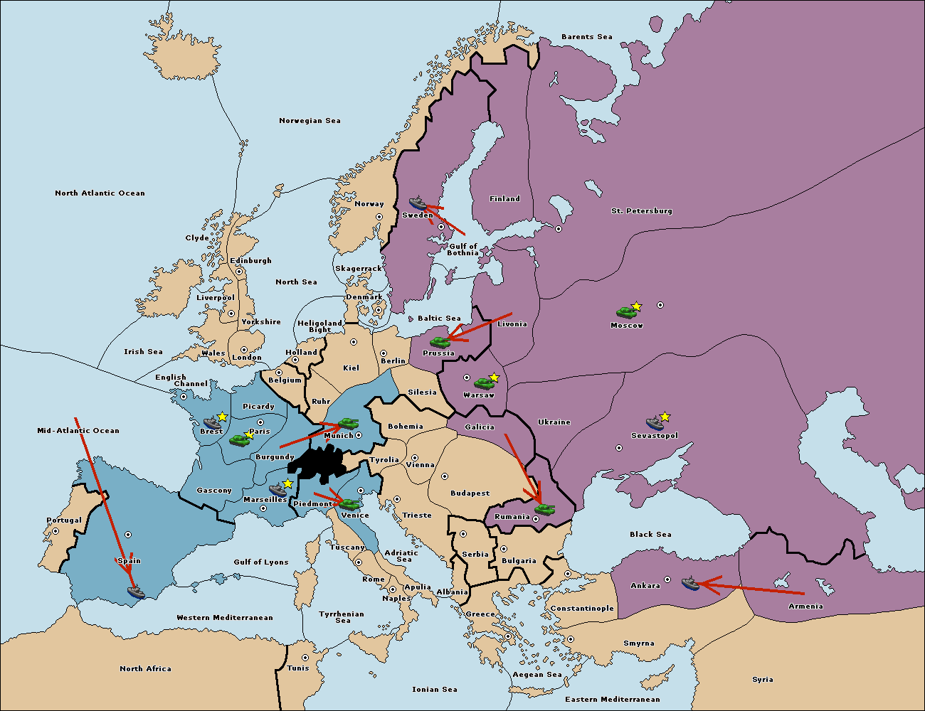 The fleet at Bulgaria (North Coast) move to Constantinople.