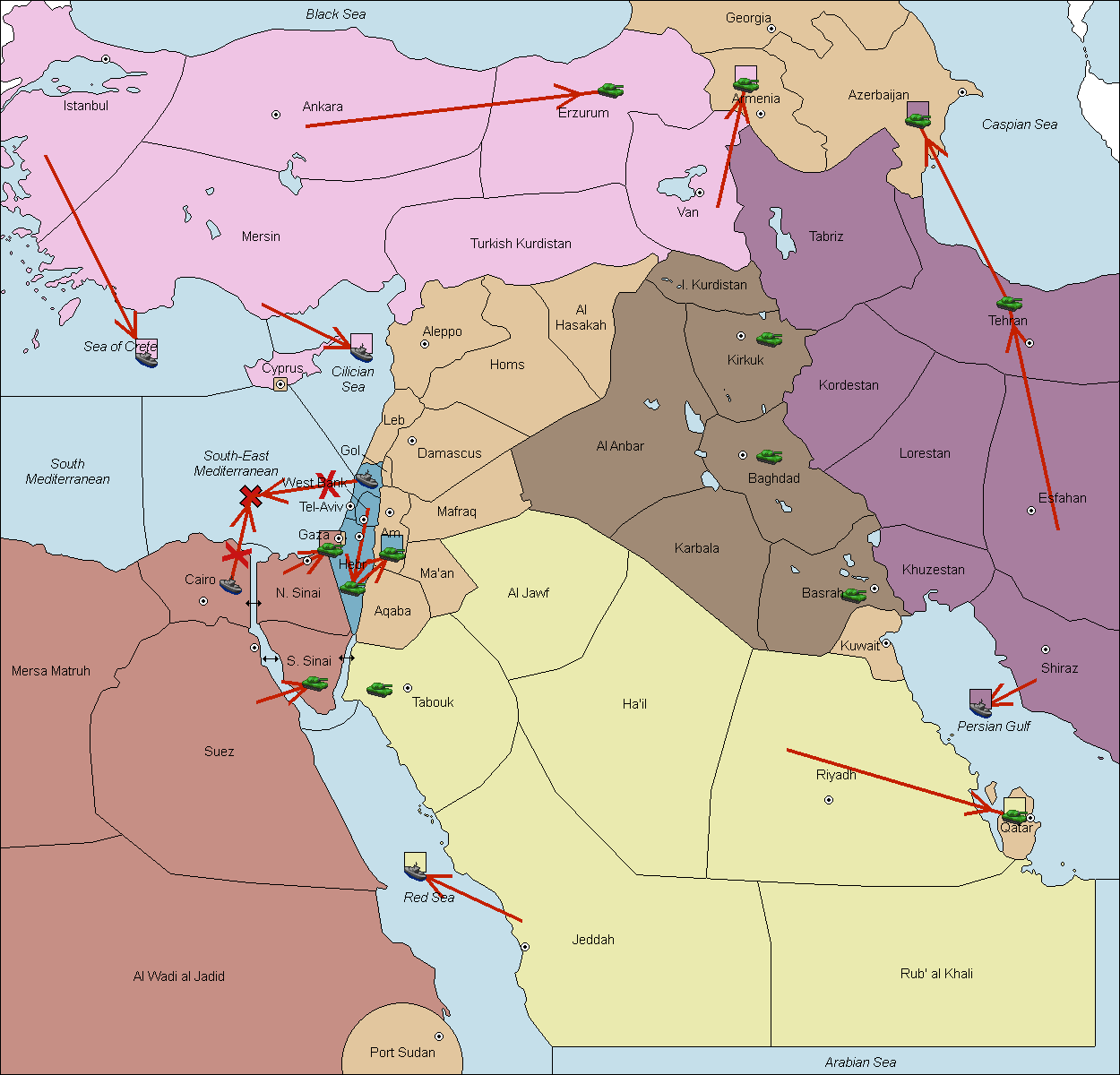 The fleet at Tel-Aviv move to South-East Mediterranean.
