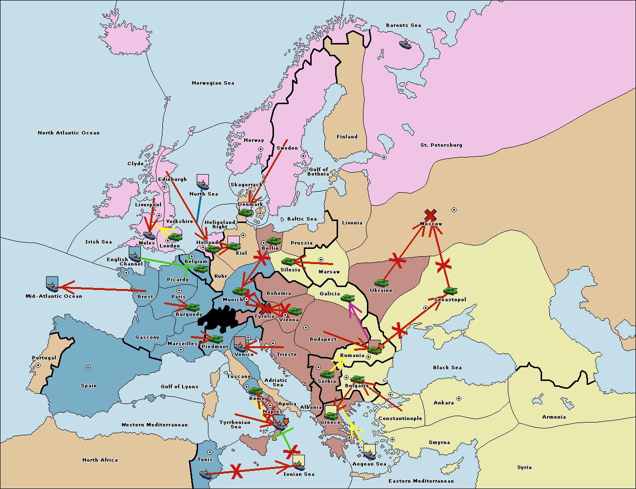 The fleet at Bulgaria (South Coast) move to Aegean Sea.