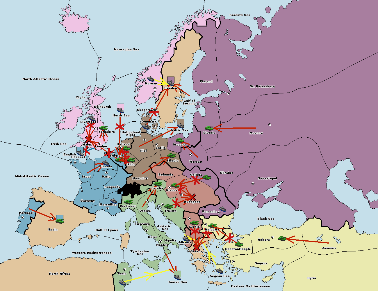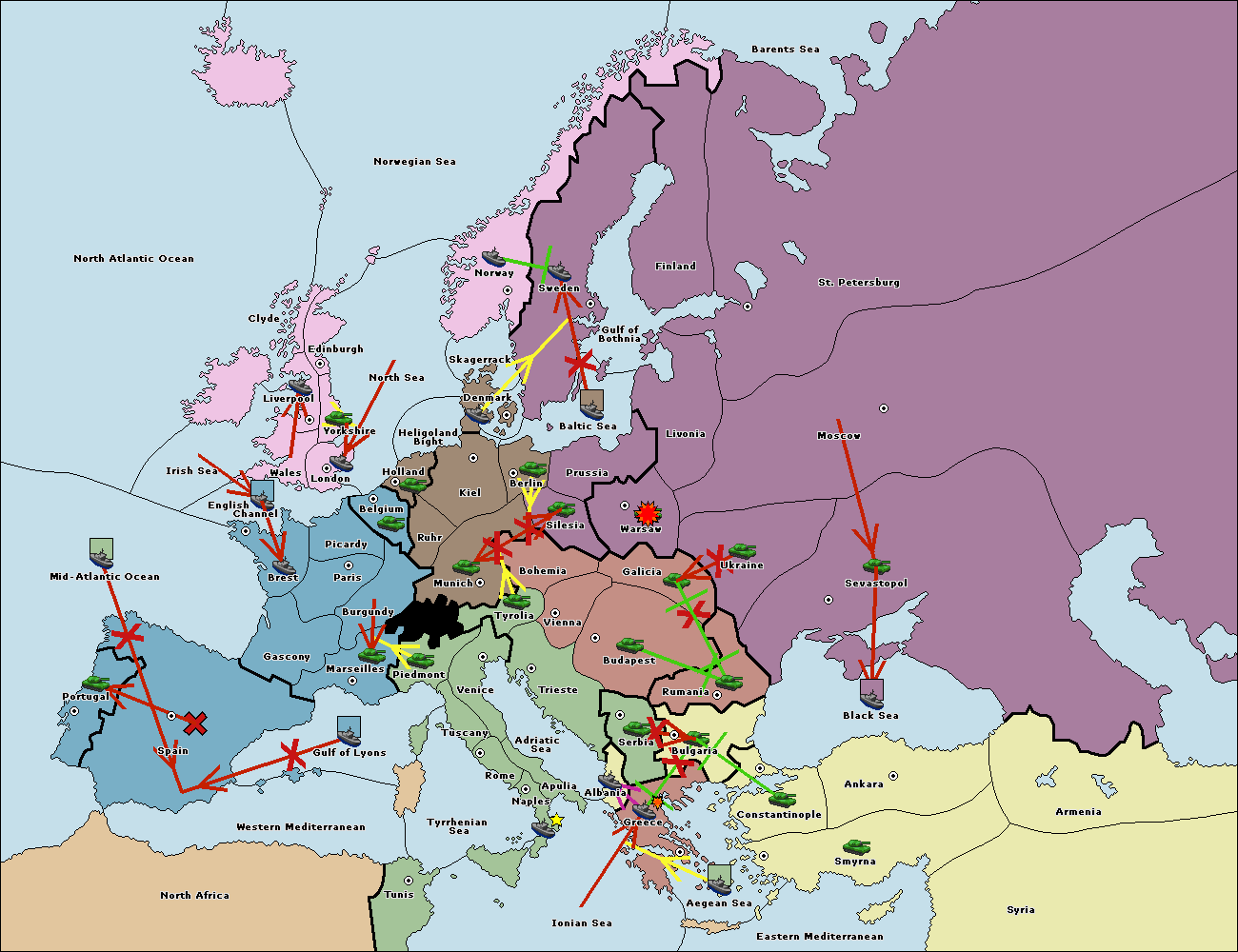 The fleet at Bulgaria (South Coast) move to Constantinople.