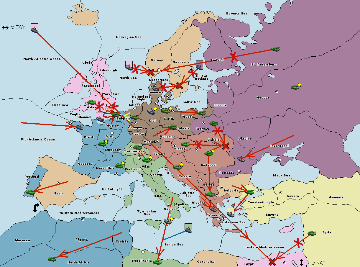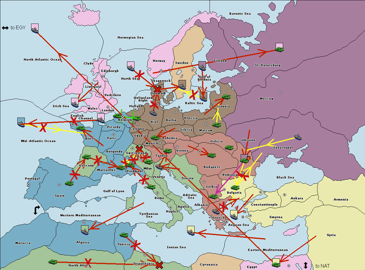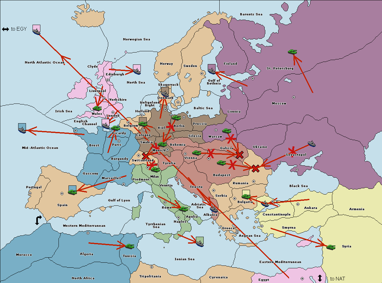 The fleet at Rumania support move to Bulgaria from Constantinople.
