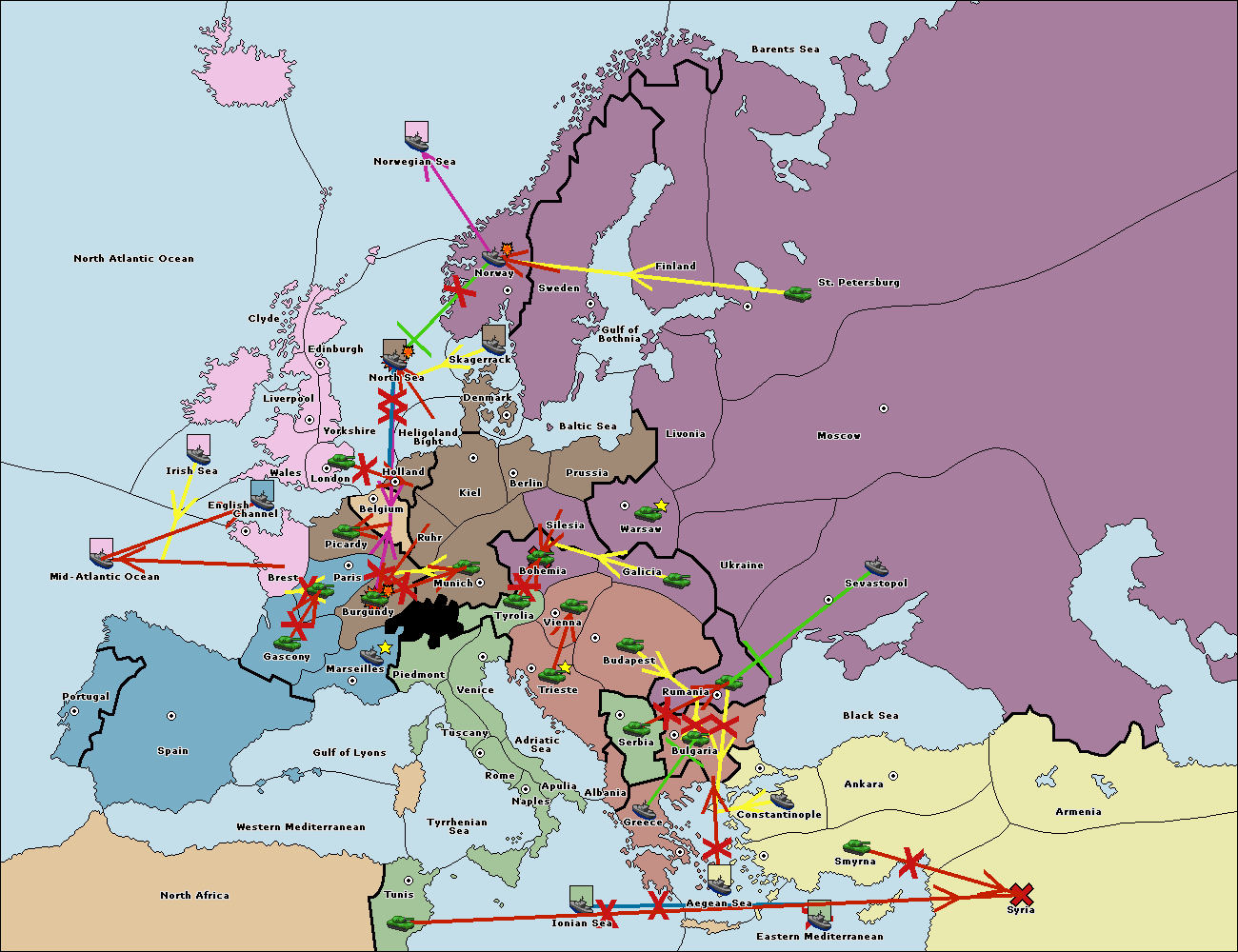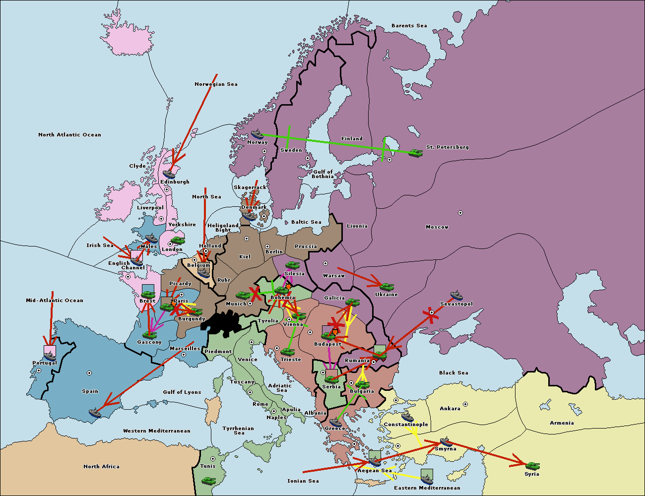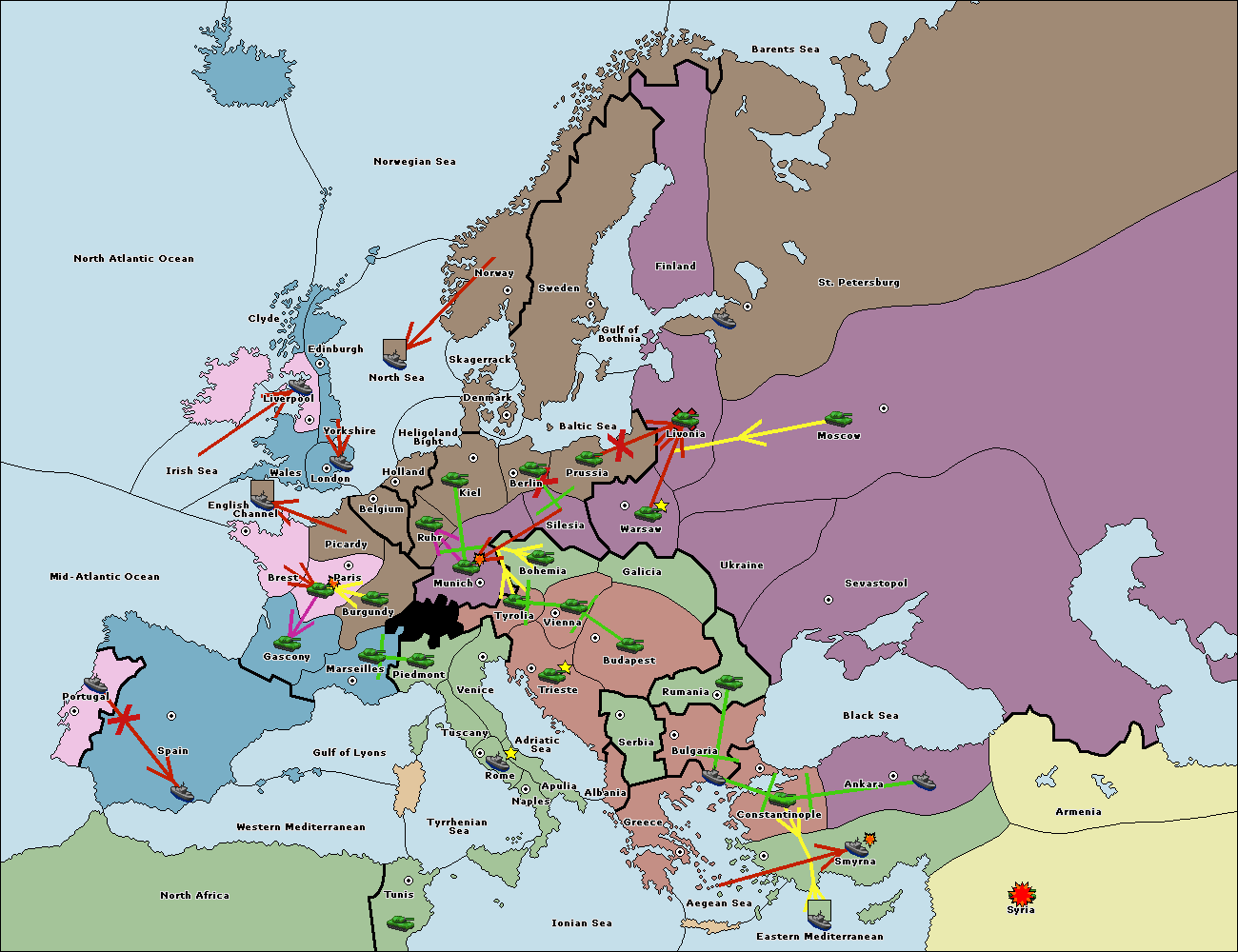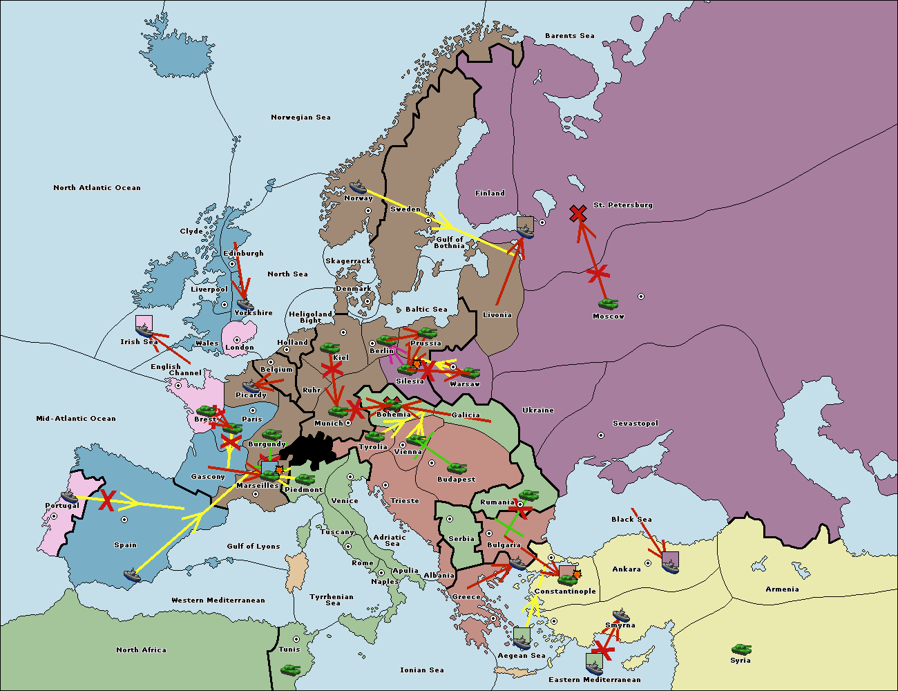 The fleet at Bulgaria (South Coast) move to Constantinople.
