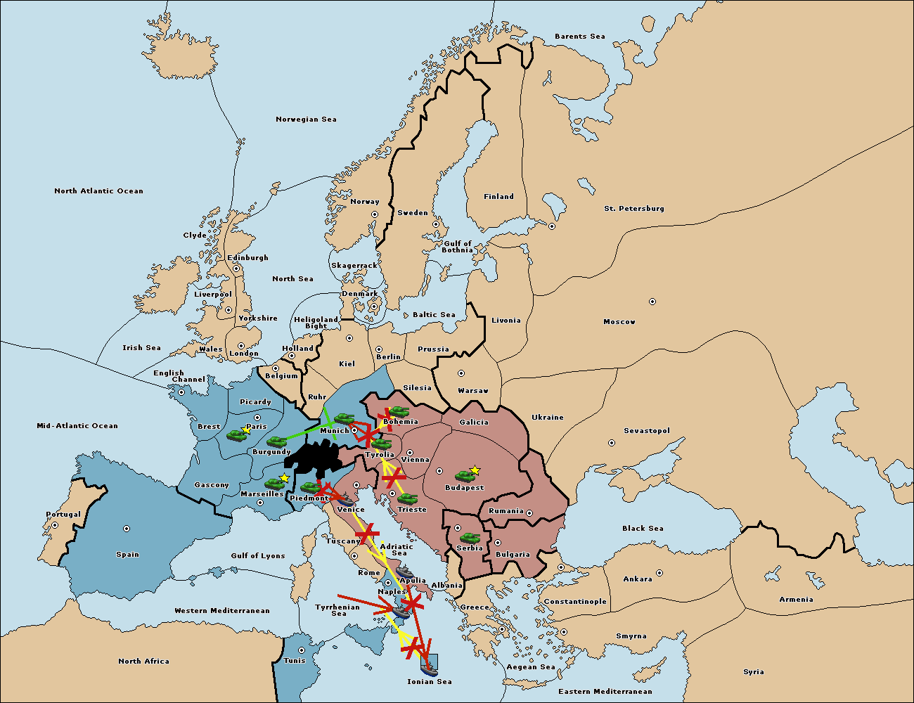 The army at Tyrolia support move to Munich from Burgundy.