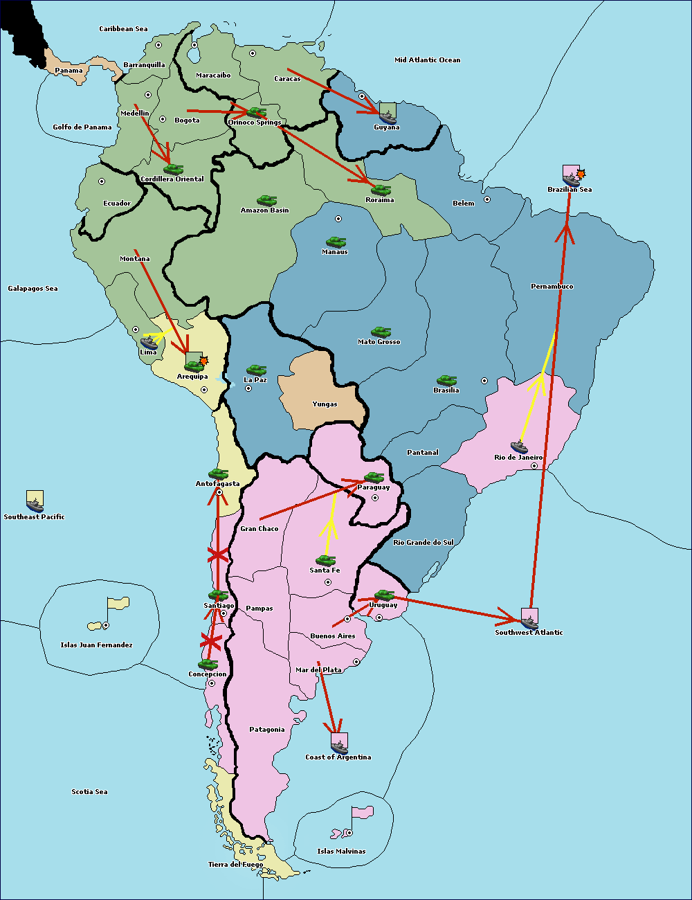 The army at Orinoco Springs move to Cordillera Oriental.