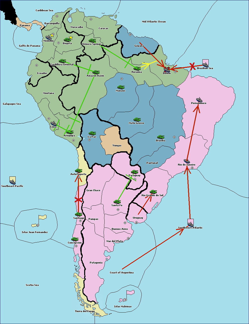 The fleet at Brazilian Sea move to Mid Atlantic Ocean.