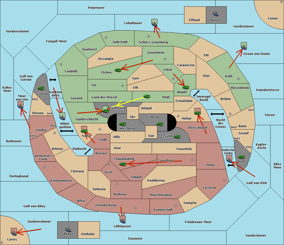 The fleet at Schloss Gruenburg move to Ozean von Doom.