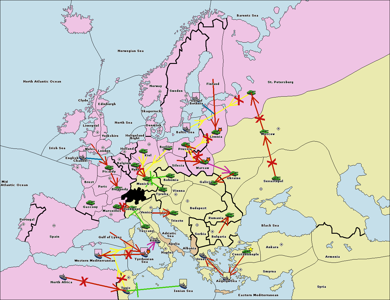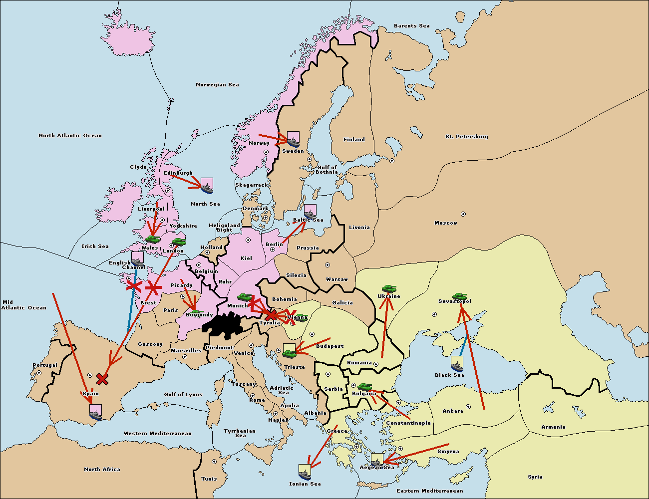 The fleet at Mid-Atlantic Ocean move to Western Mediterranean.