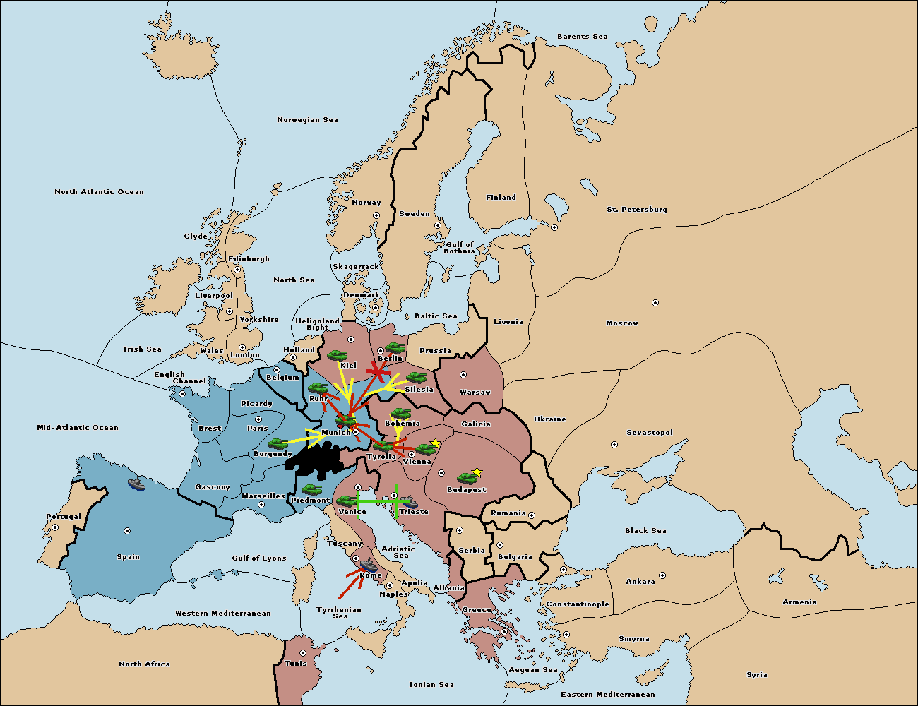 The army at Kiel support move to Munich from Tyrolia.
