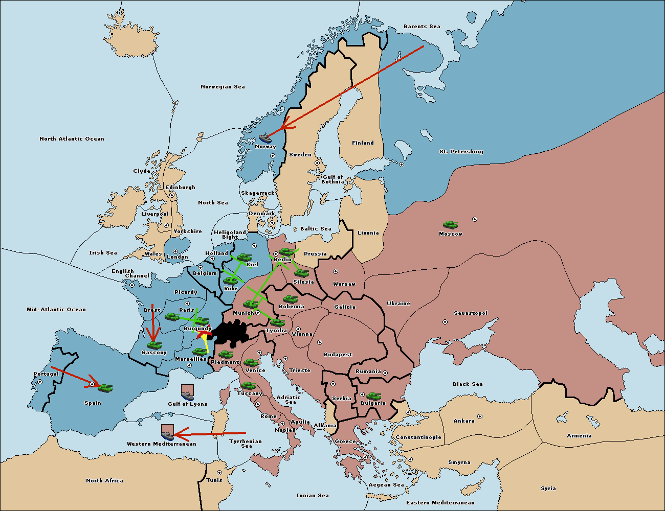 The fleet at Tyrrhenian Sea move to Western Mediterranean.