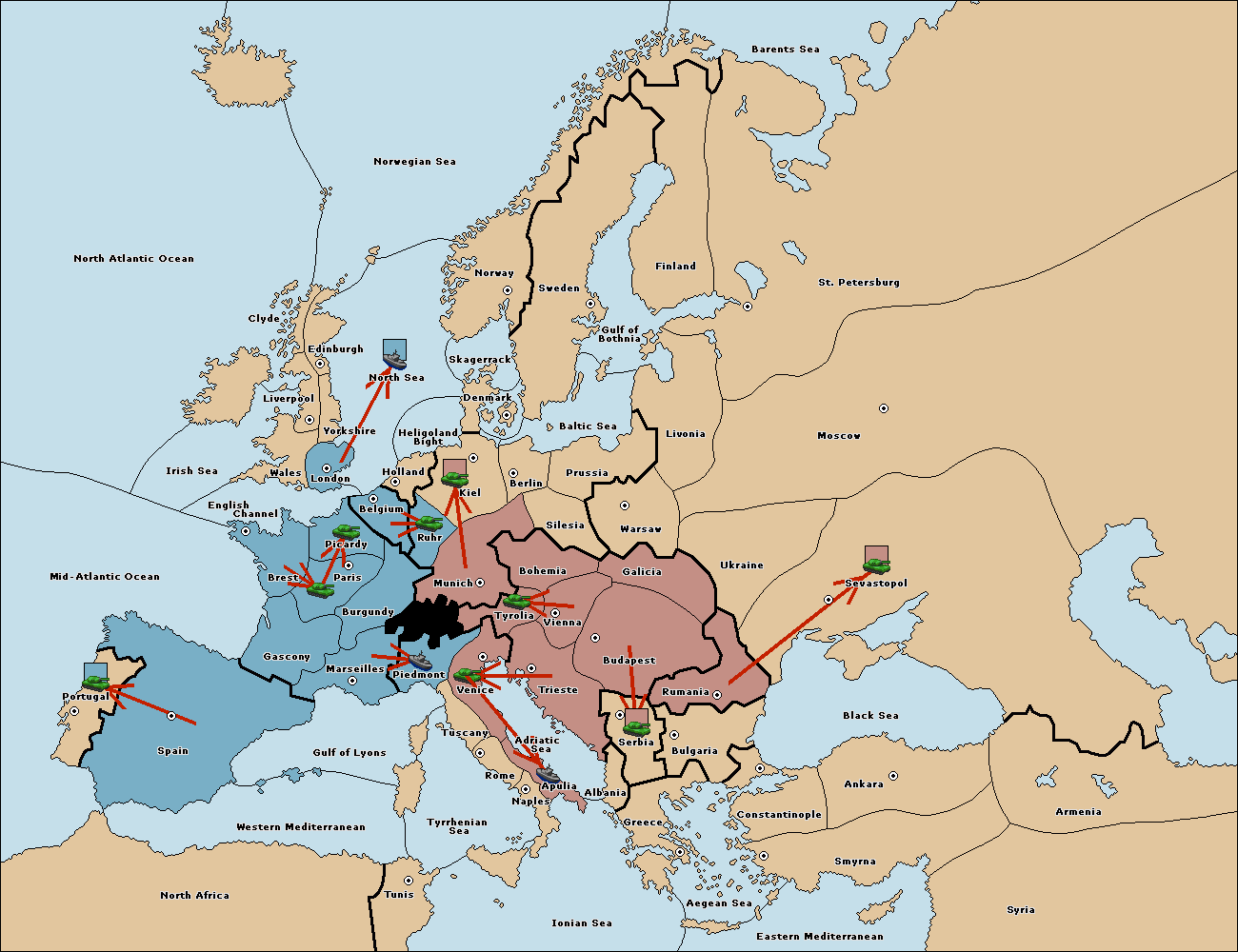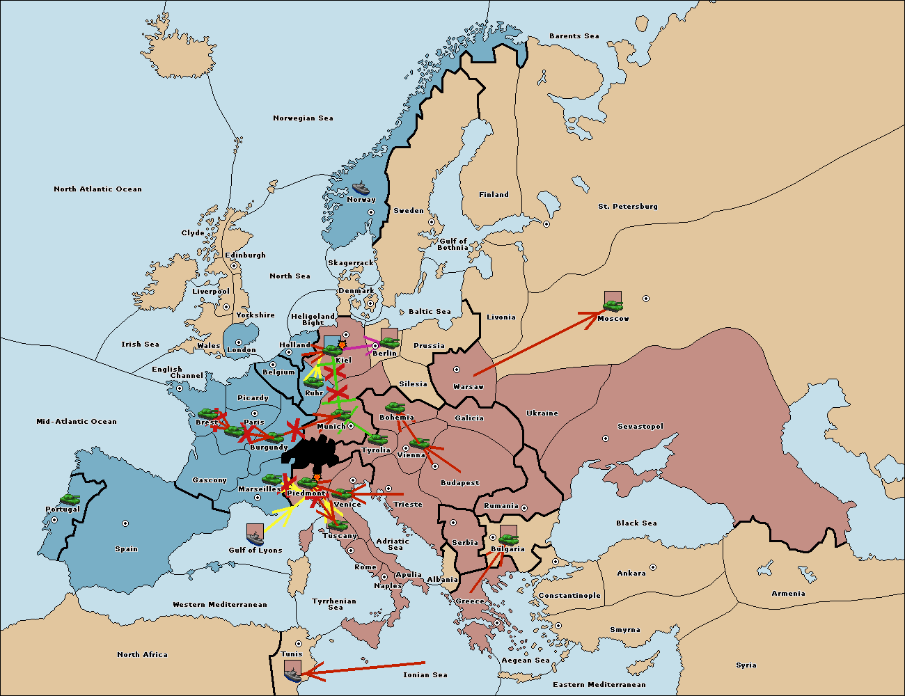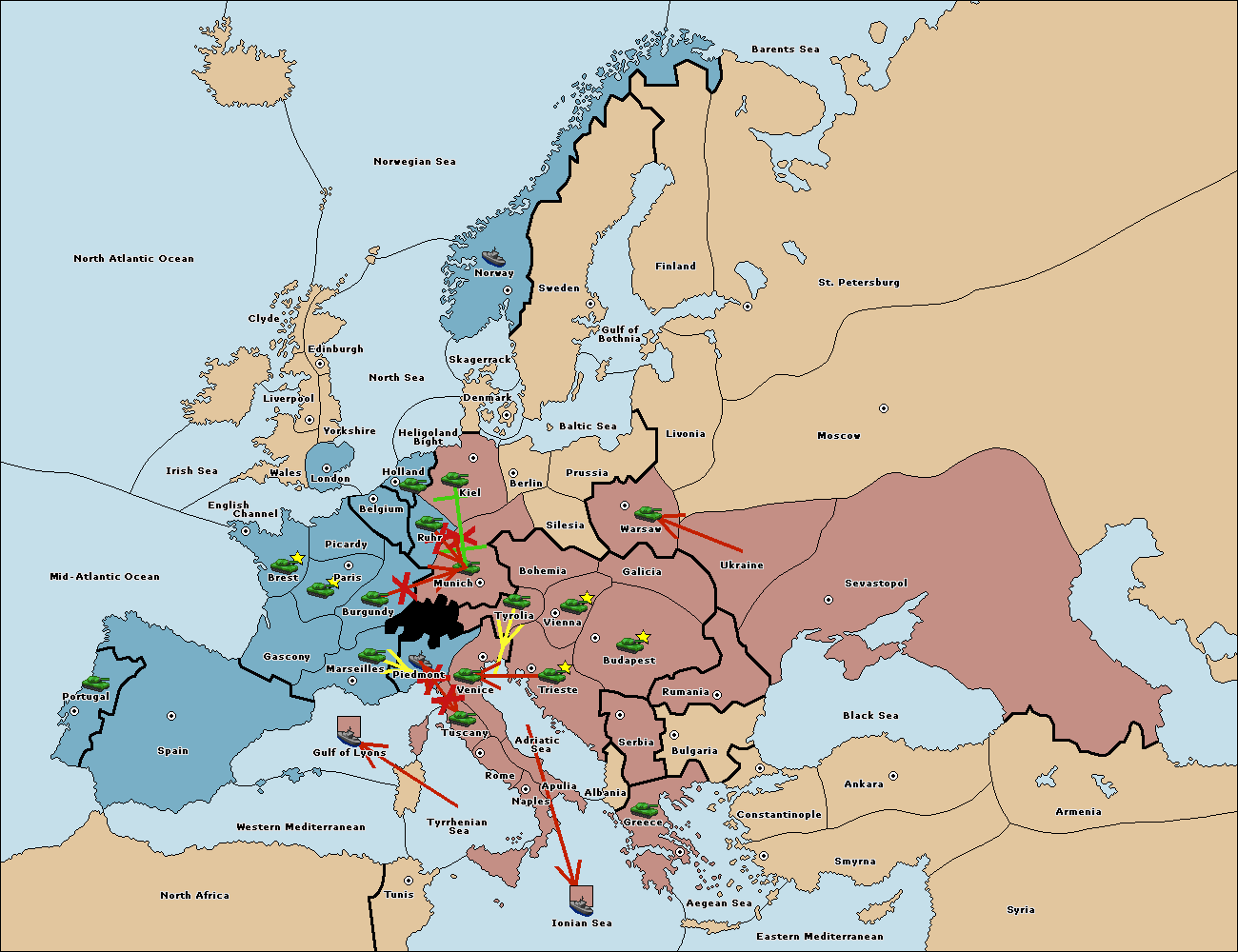 The fleet at Gulf of Lyons support move to Marseilles from Piedmont.