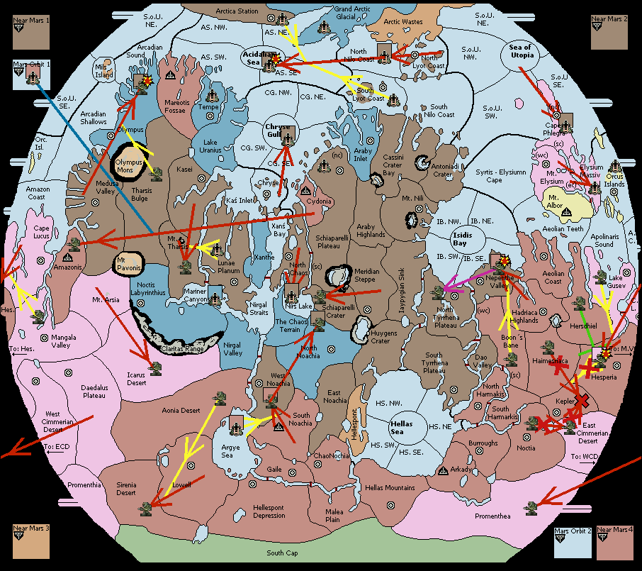 The fleet at Schiaparelli Plateau (North Coast) support move to Cydonia from Chryse Gulf.
