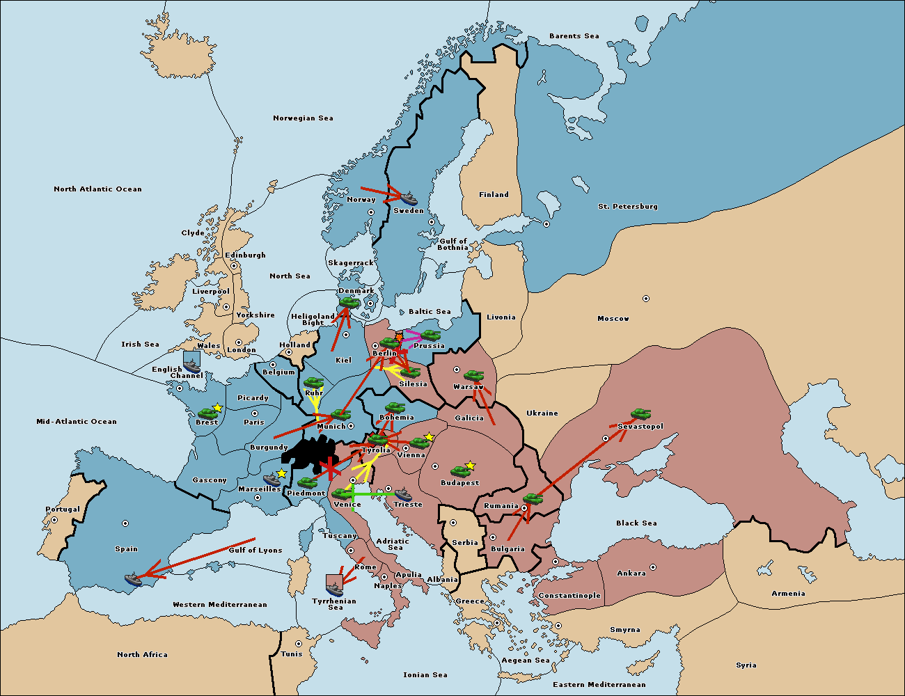 The fleet at Spain (South Coast) move to Western Mediterranean.