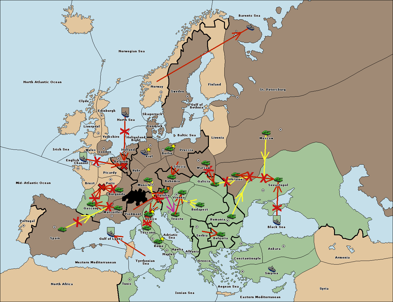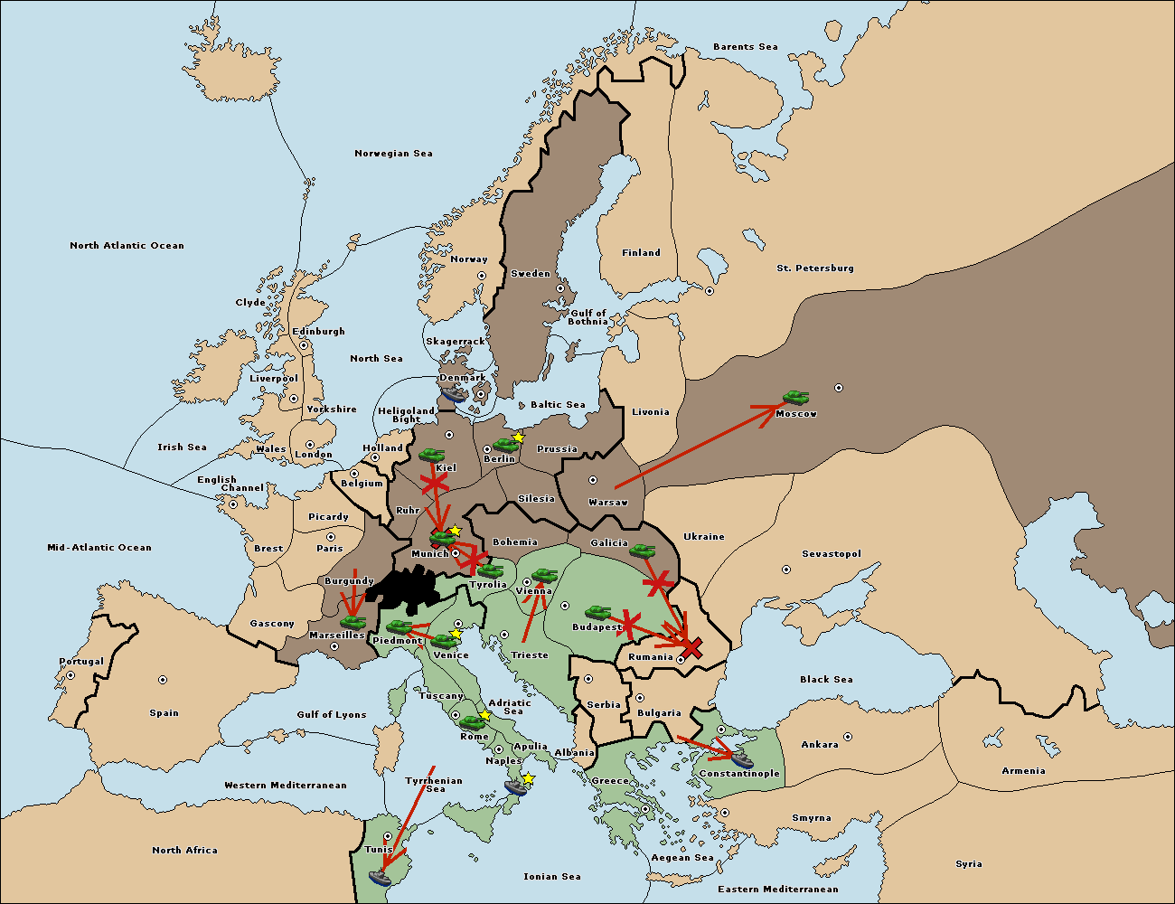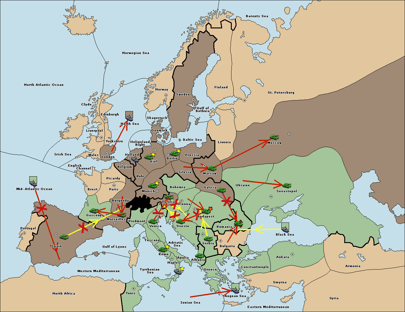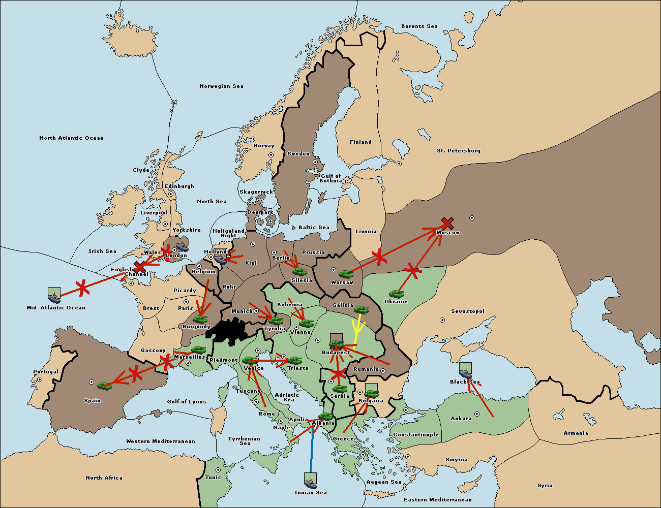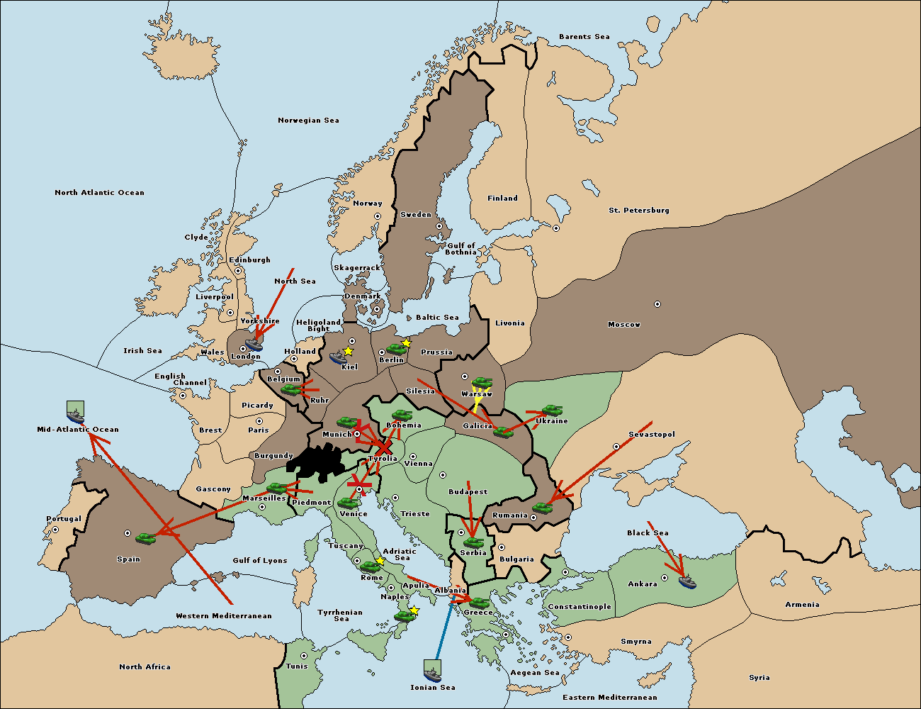 The fleet at Bulgaria (South Coast) move to Constantinople.