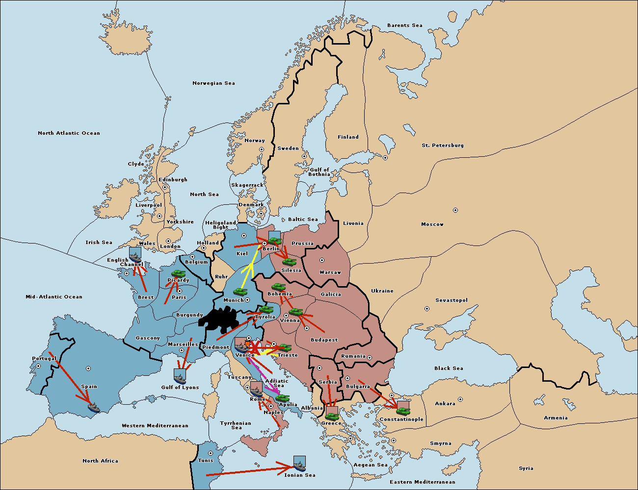 The fleet at Western Mediterranean move to Tyrrhenian Sea.