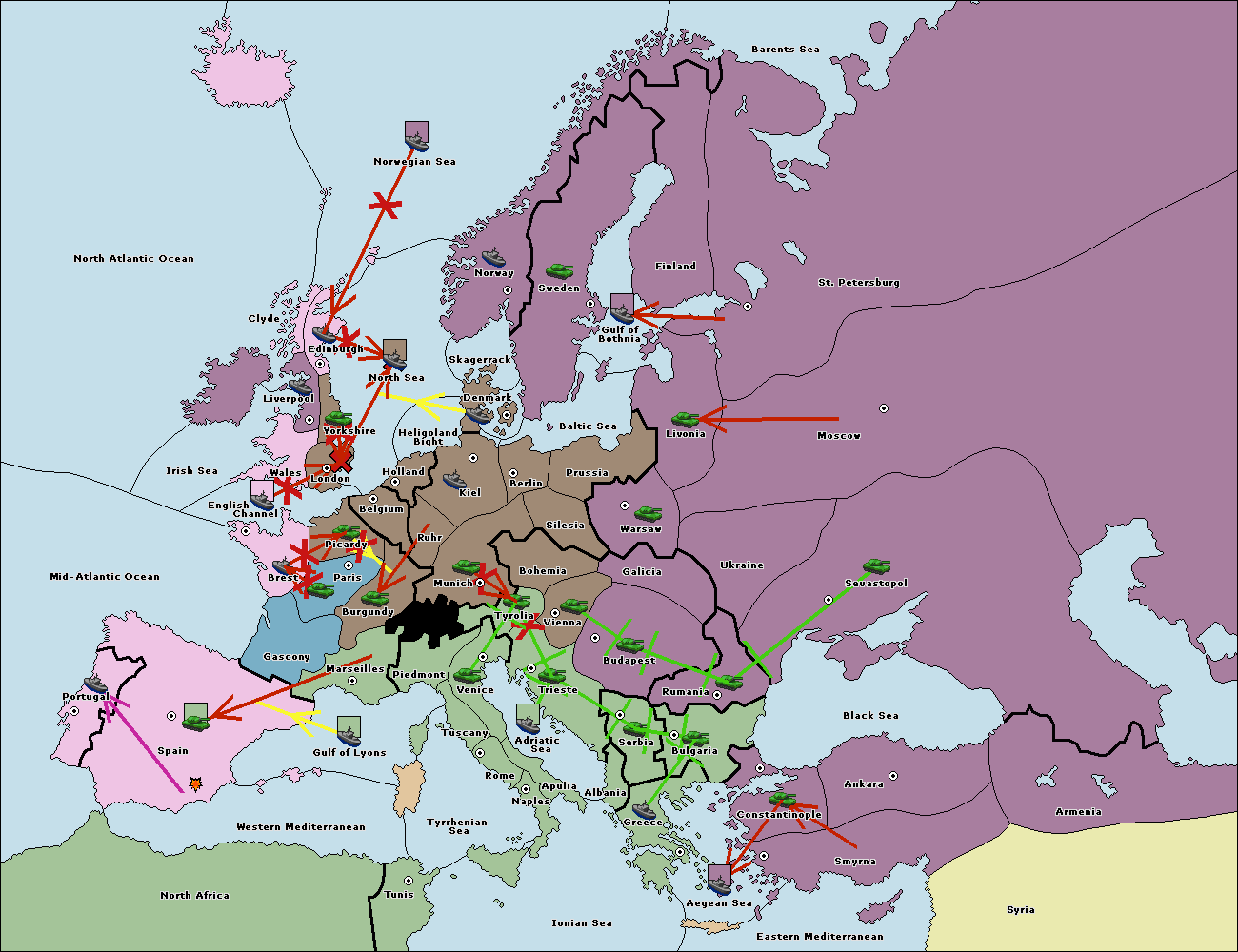 The fleet at St. Petersburg (South Coast) move to Livonia.