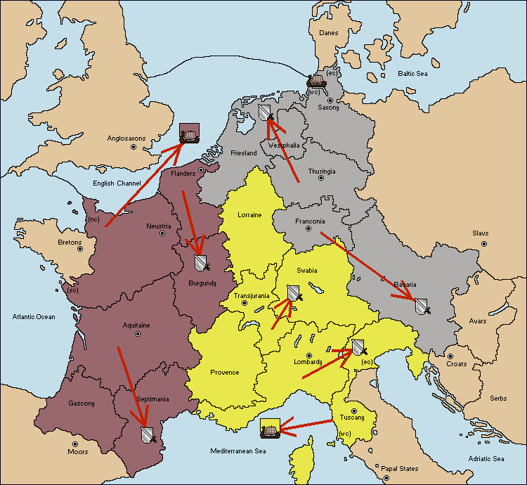 The fleet at Tuscany (West Coast) move to Mediterranean Sea.
