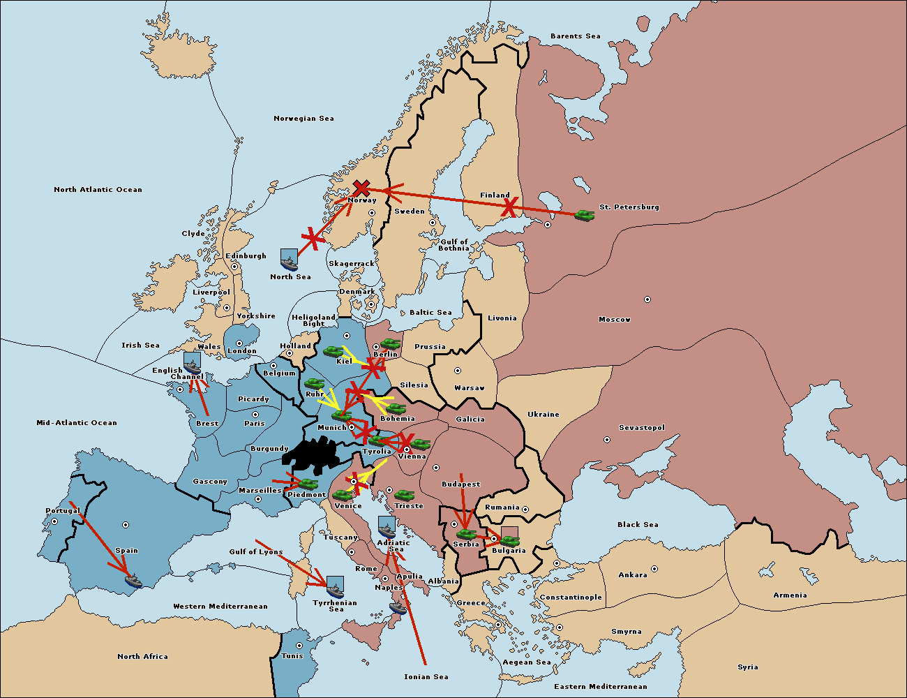 The fleet at Adriatic Sea support move to Venice from Tyrolia.