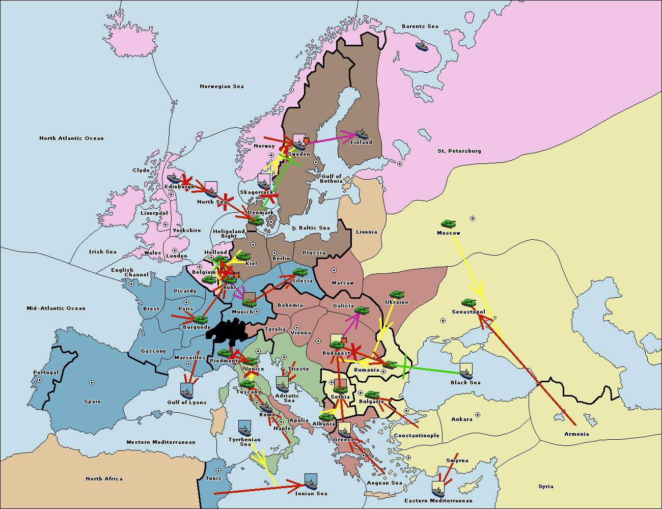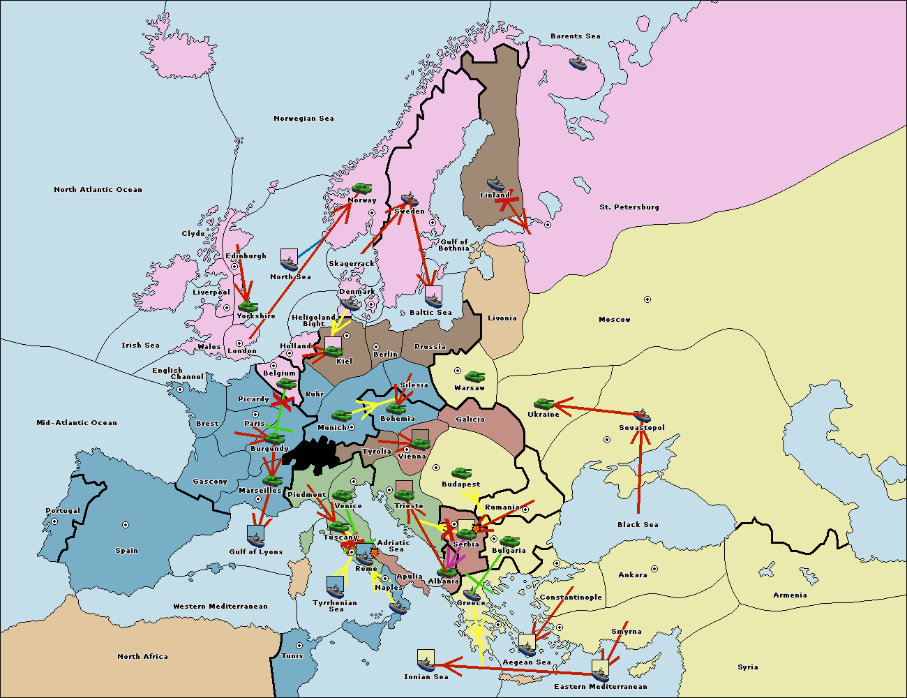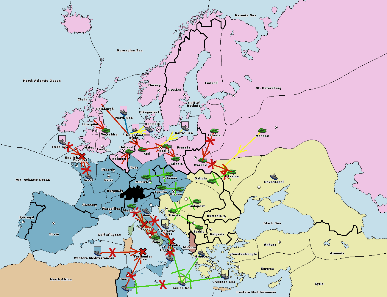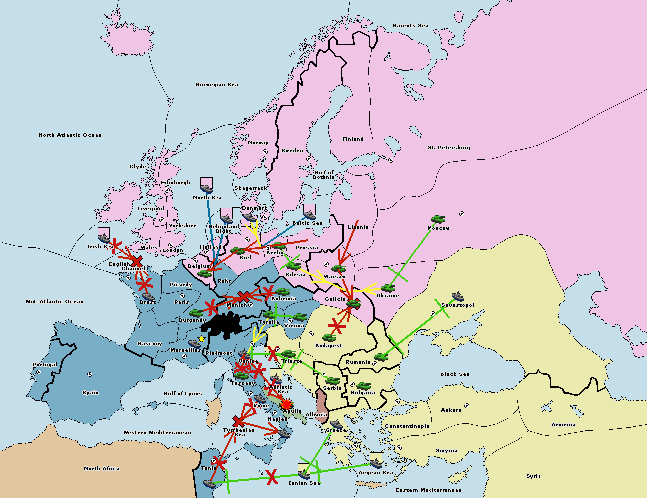 The fleet at Tyrrhenian Sea support move to Naples from Ionian Sea.