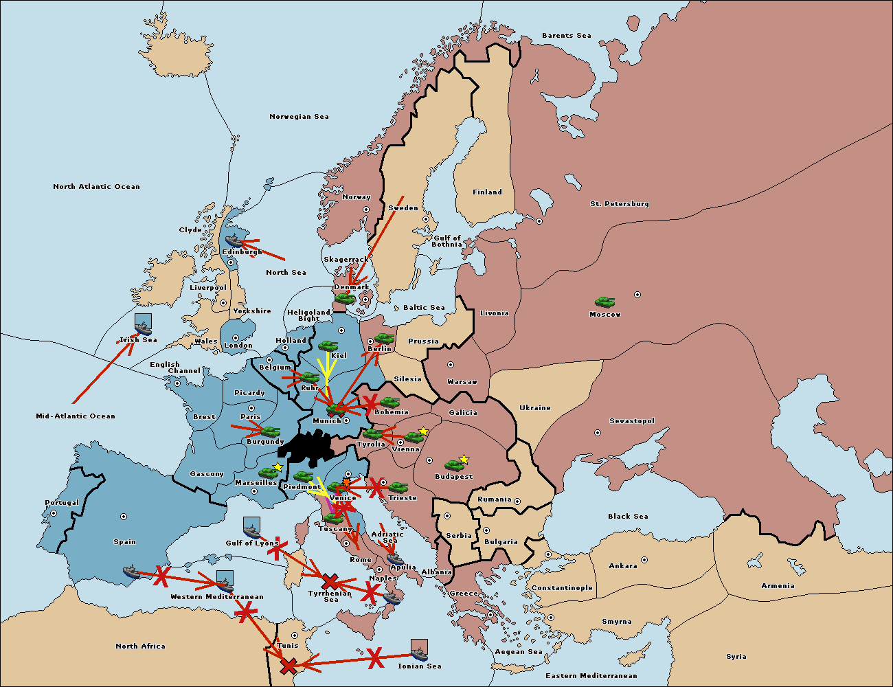 The fleet at Spain (South Coast) move to Western Mediterranean.