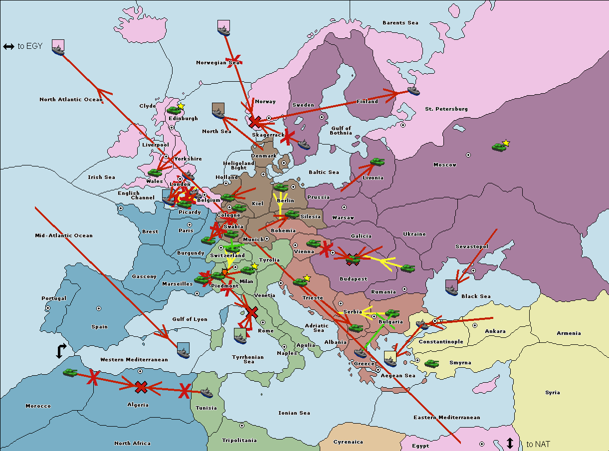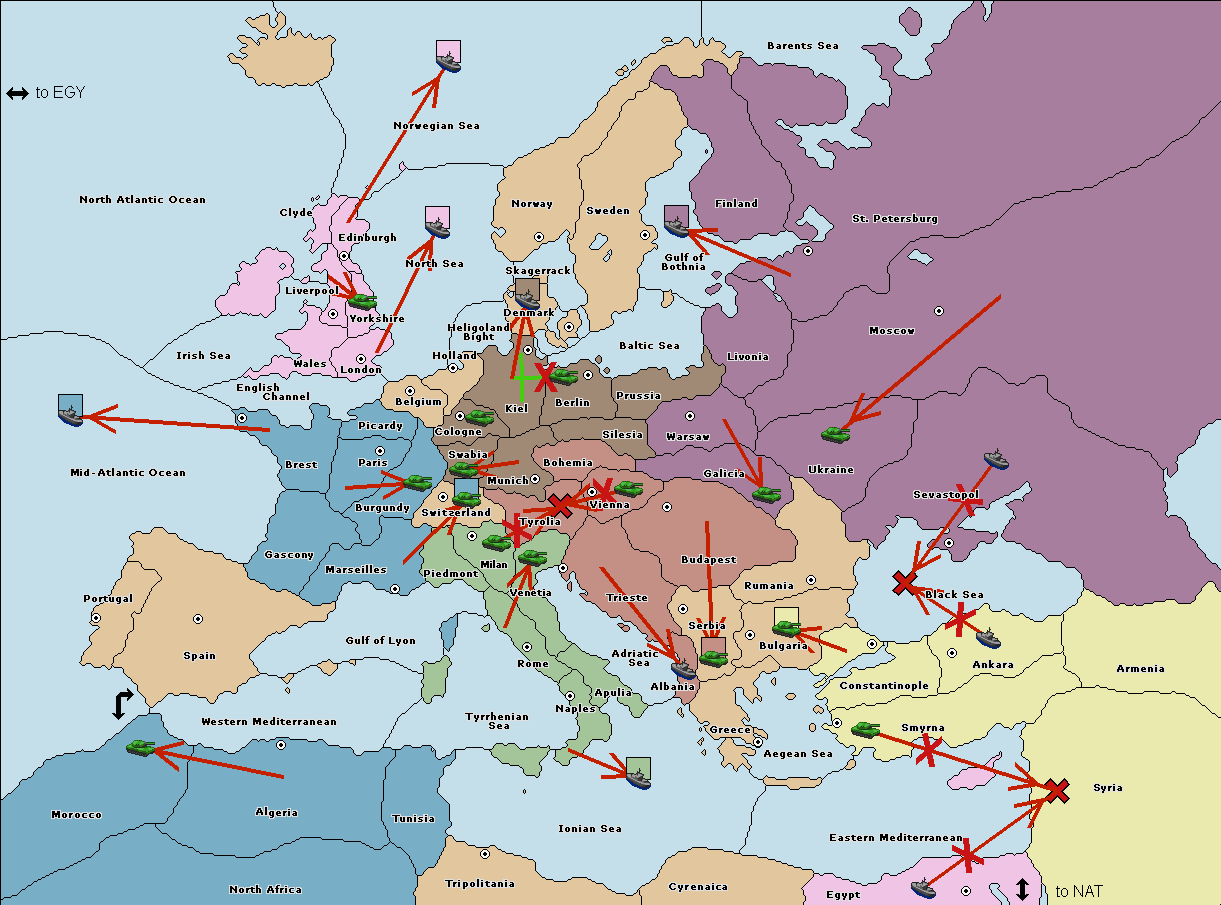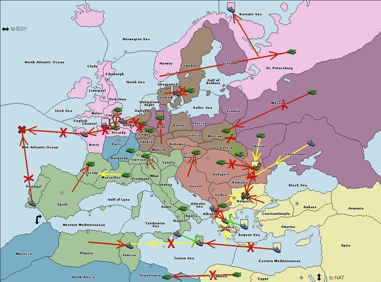 The fleet at Mid-Atlantic Ocean move to Western Mediterranean.