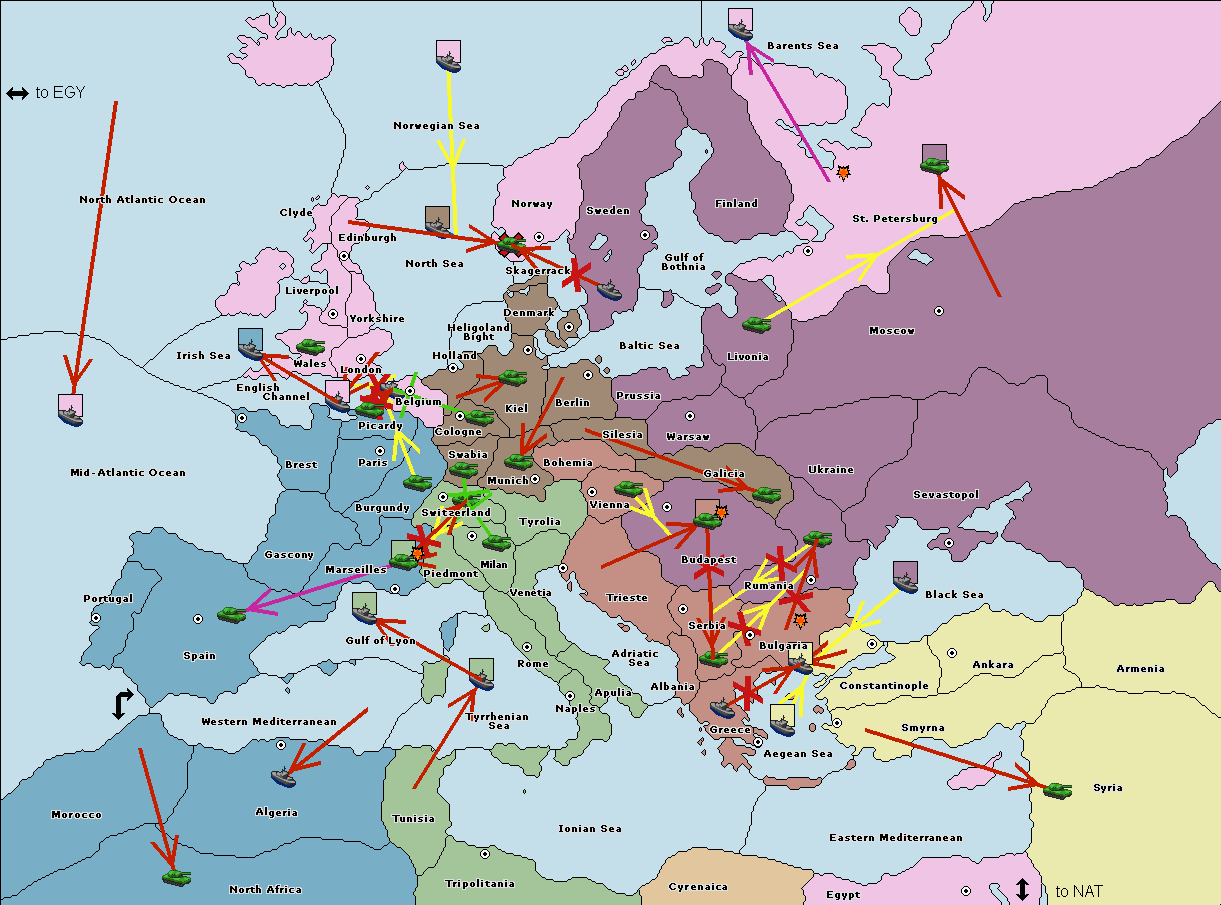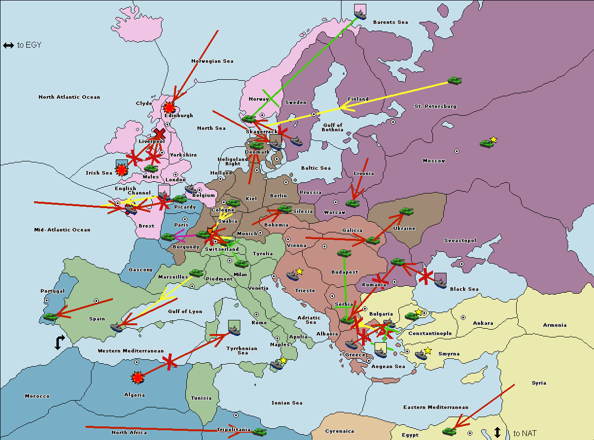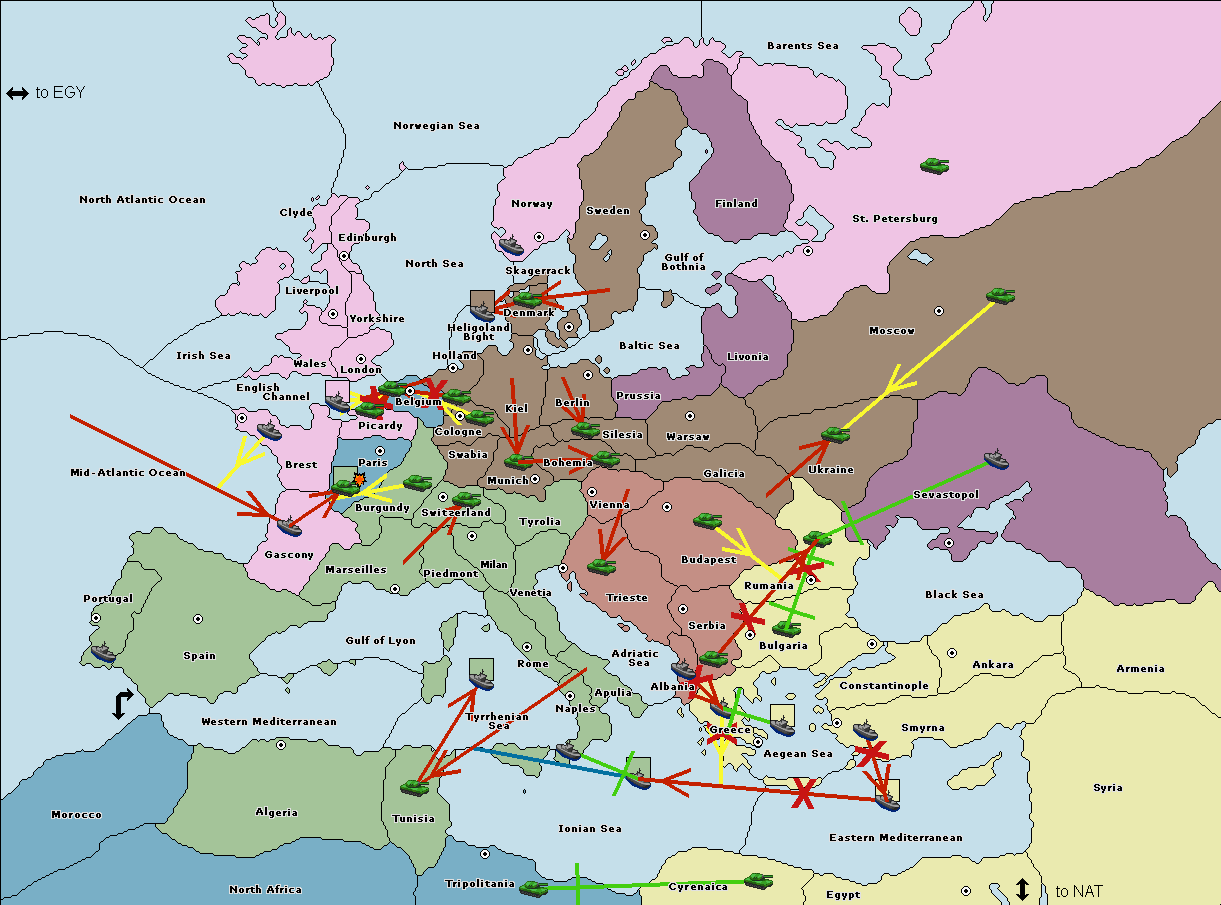 The fleet at Mid-Atlantic Ocean move to Western Mediterranean.