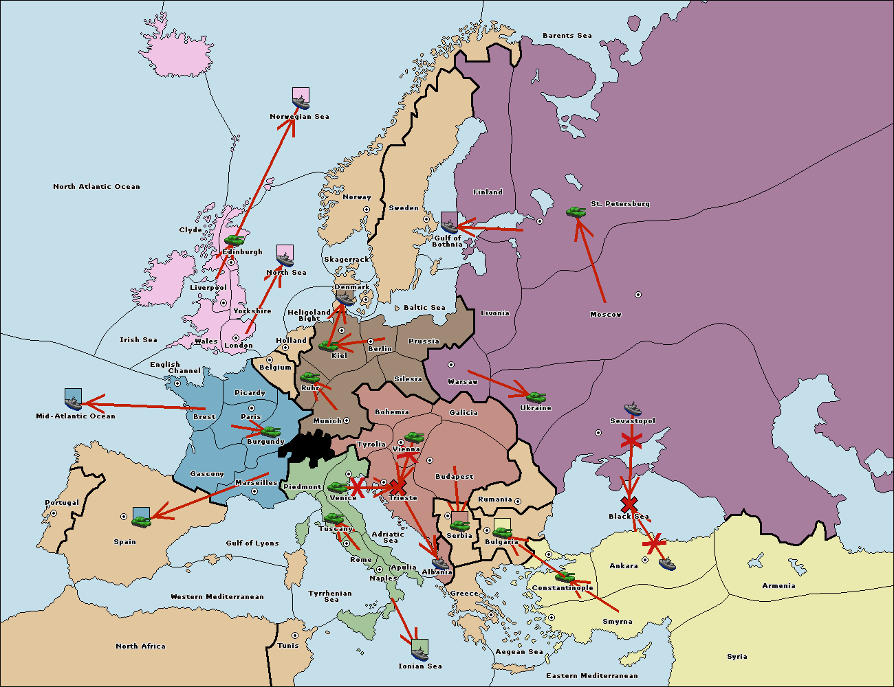 The fleet at St. Petersburg (South Coast) move to Gulf of Bothnia.