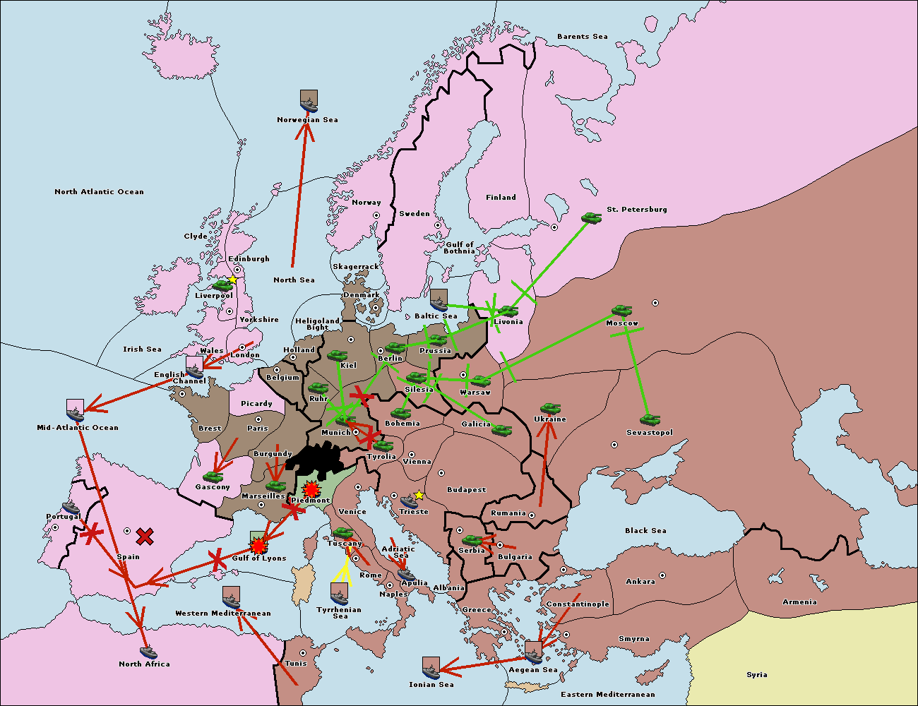 The fleet at Gulf of Lyons support move to Marseilles from Piedmont.
