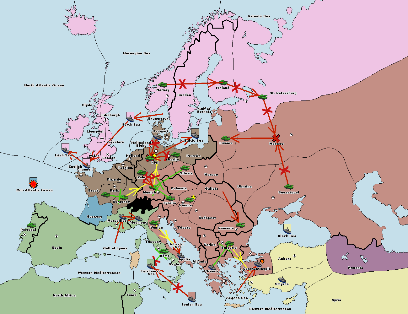 The army at Tyrolia support move to Piedmont from Tuscany.