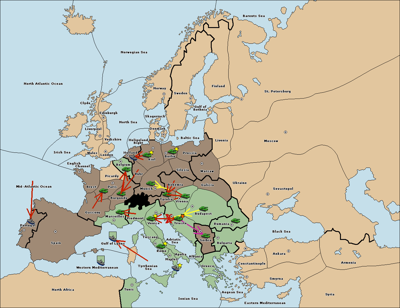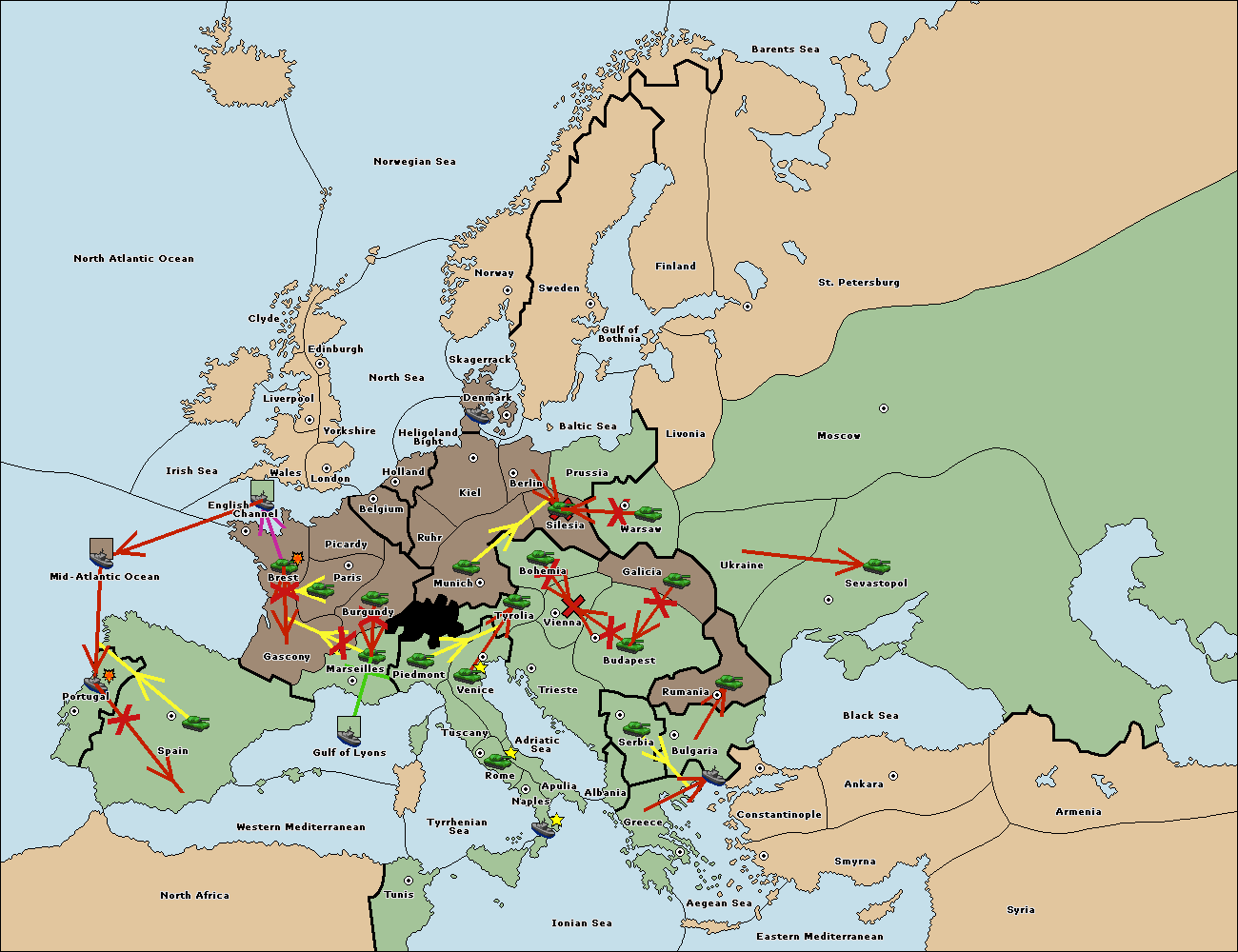 The army at Tyrolia move to Vienna.
