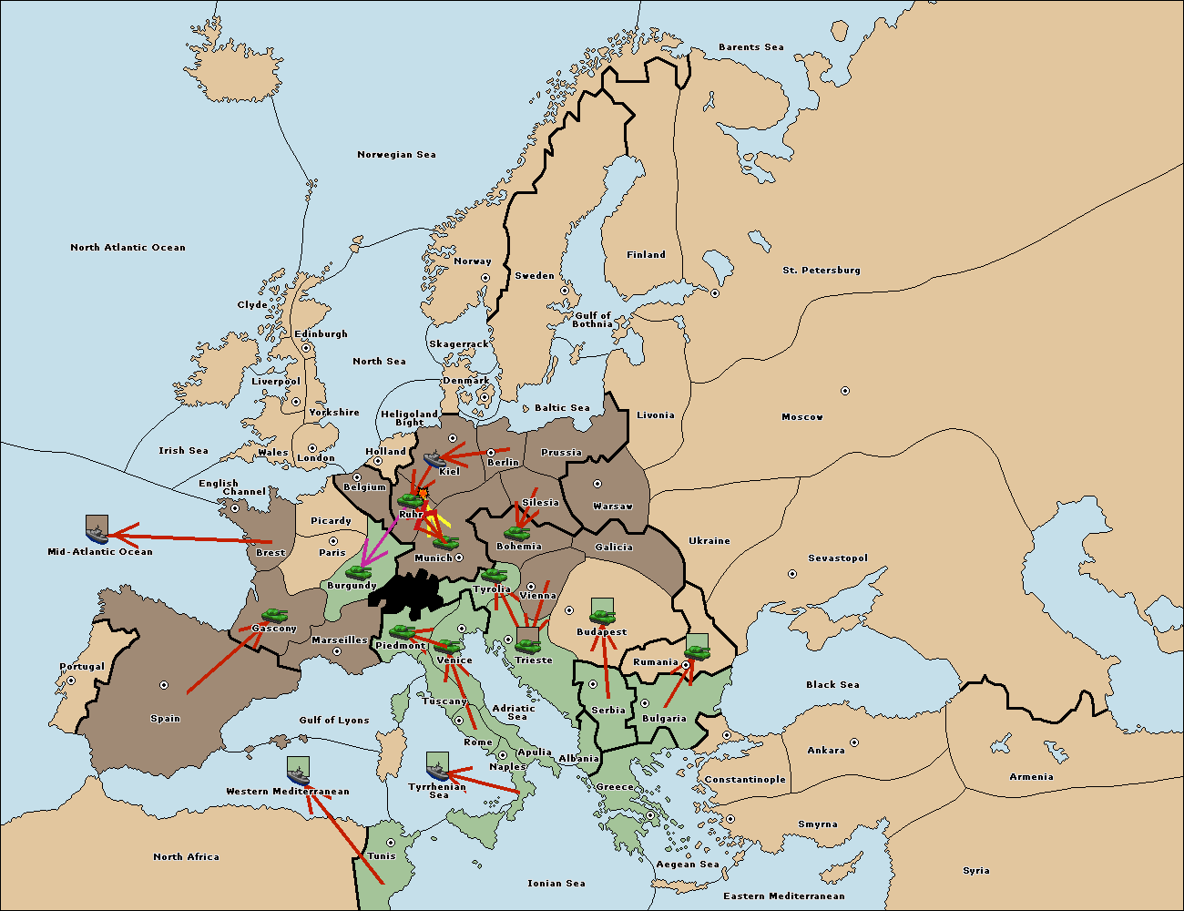 The army at Tyrolia move to Munich.