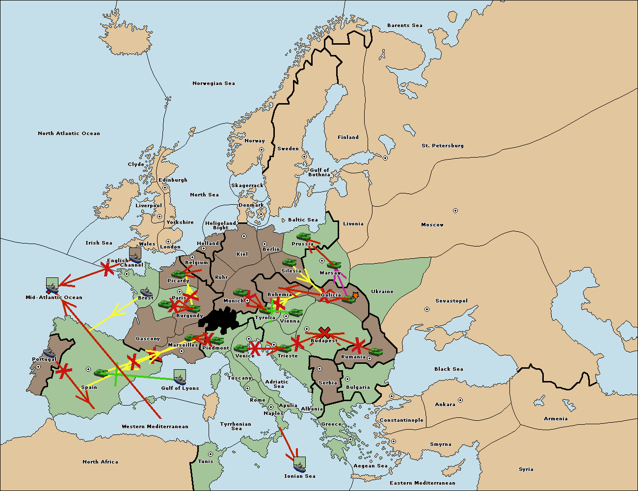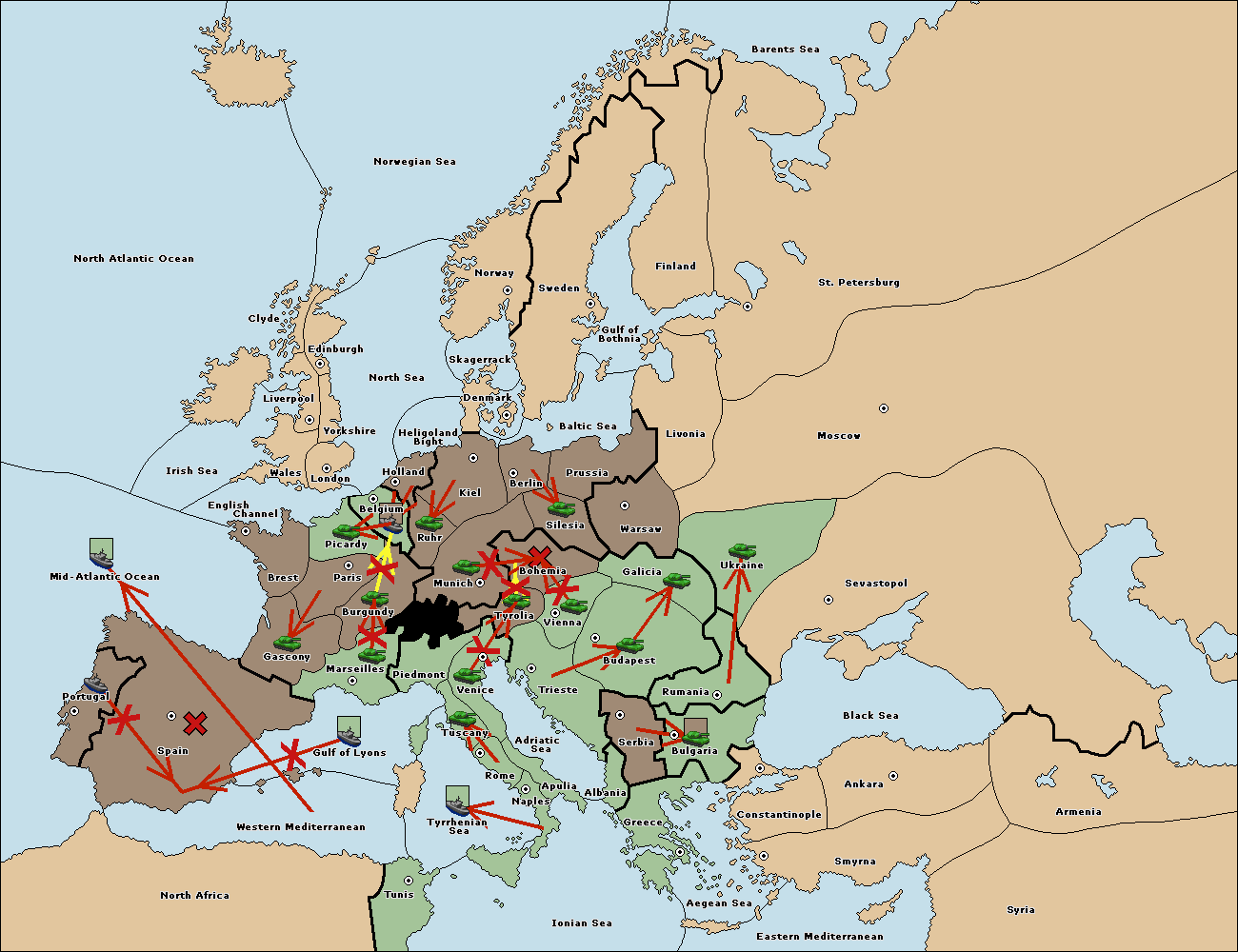 The army at Tyrolia support move to Bohemia from Galicia.