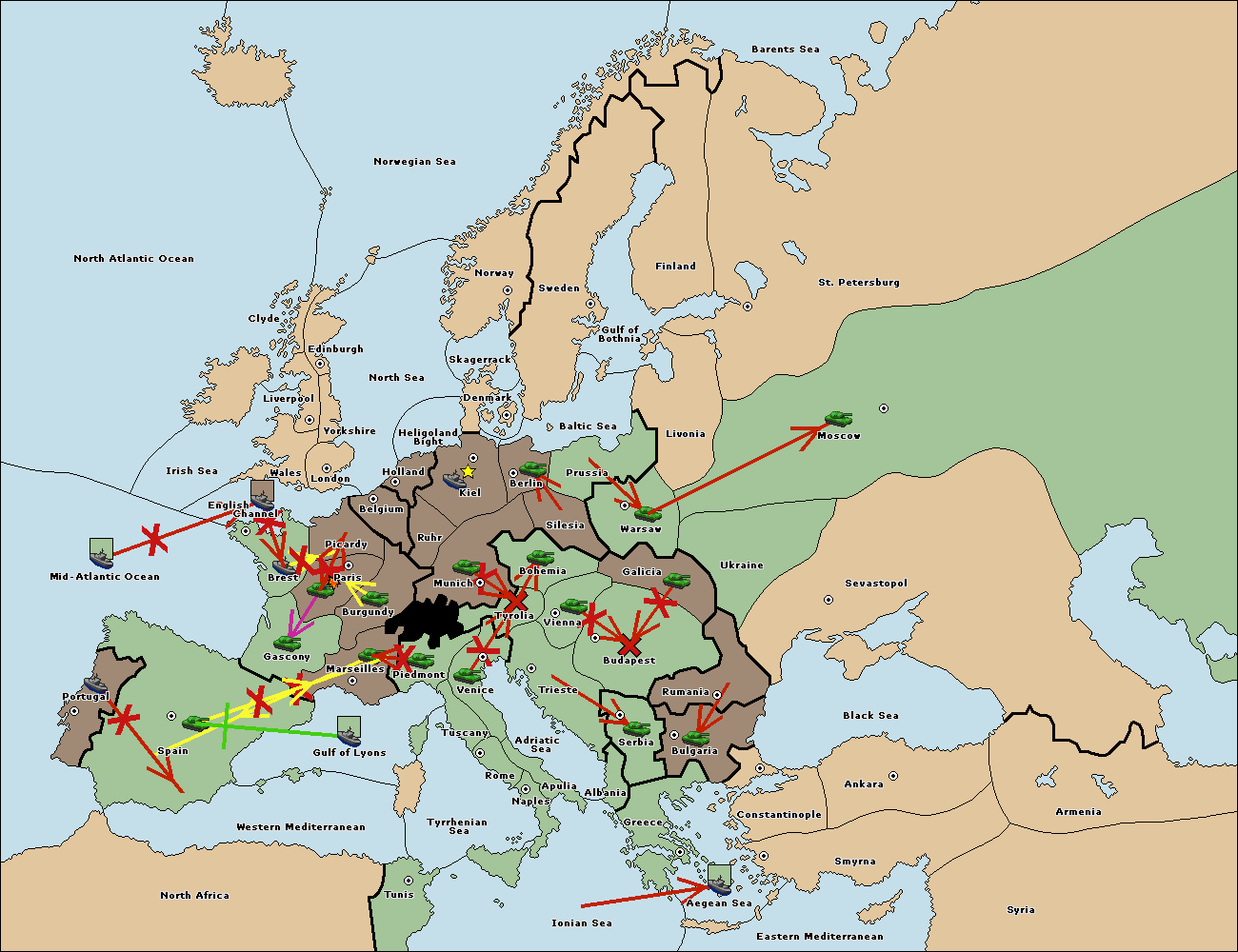 The fleet at Greece move to Bulgaria (South Coast).