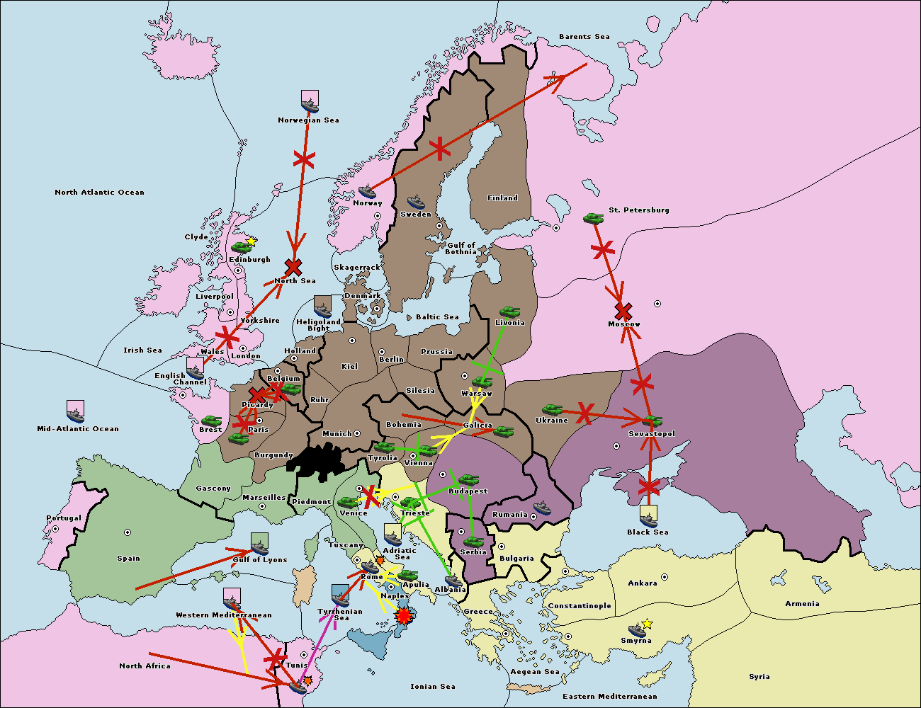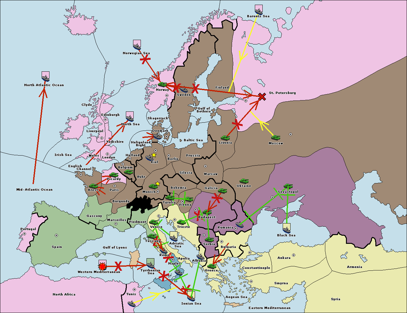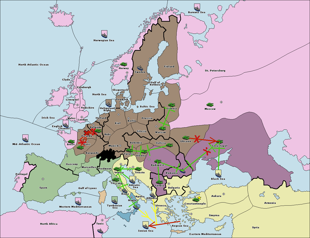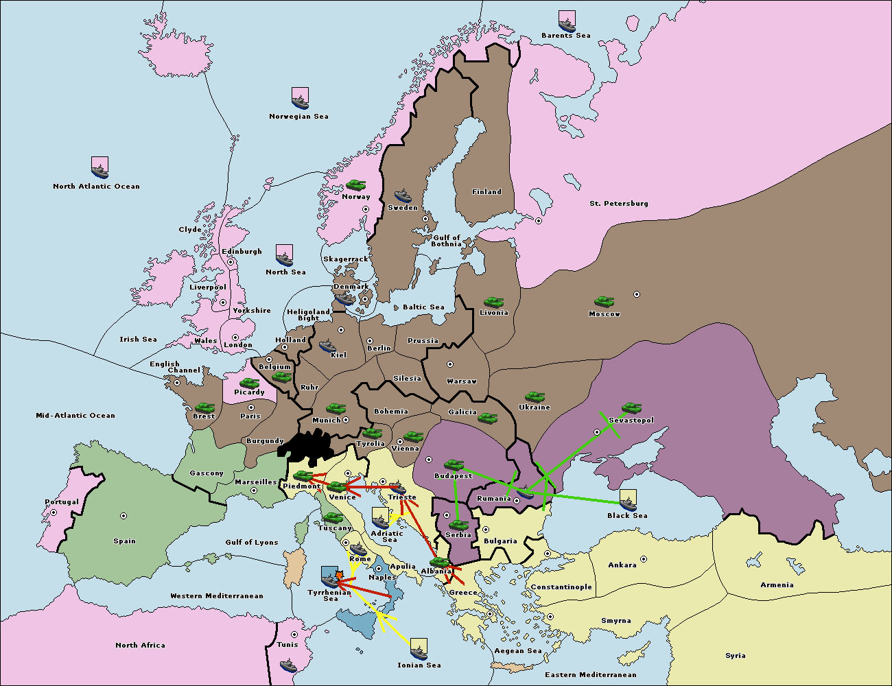 The fleet at Ionian Sea support move to Naples from Tyrrhenian Sea.