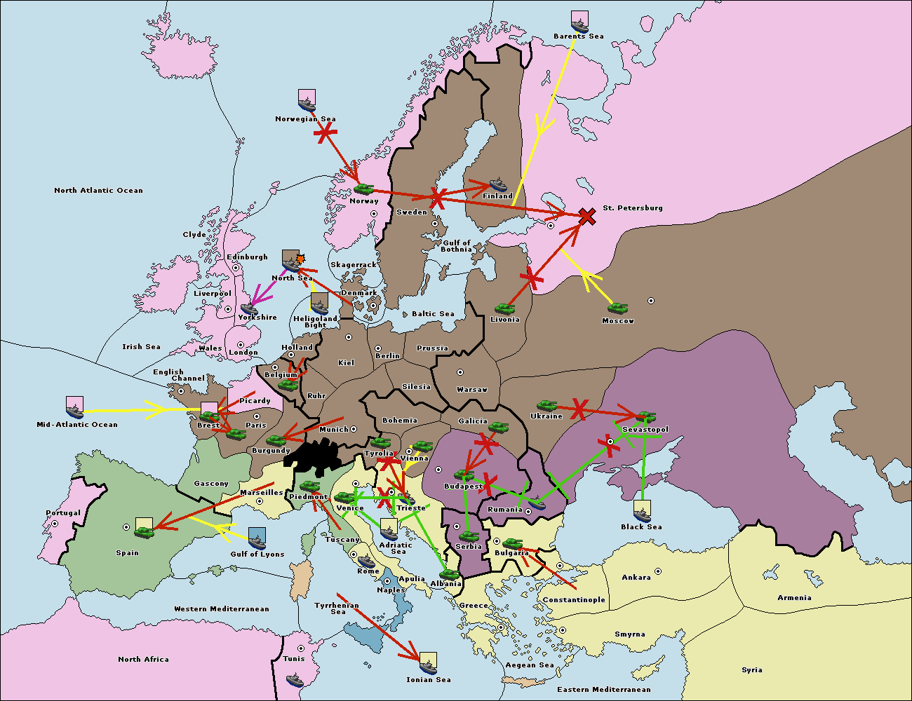 The fleet at Spain (South Coast) support move to Marseilles from Gascony.
