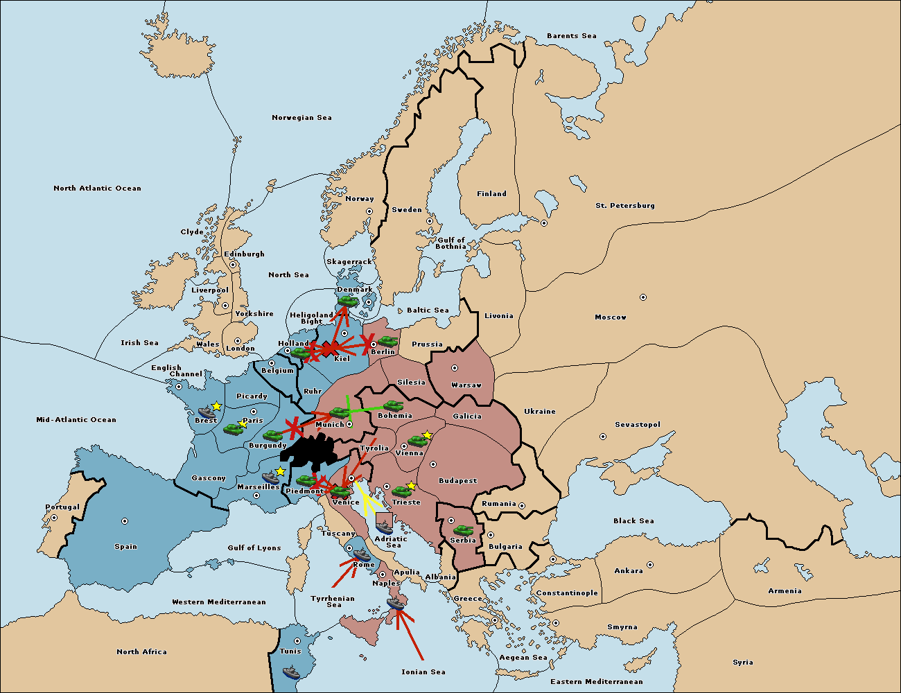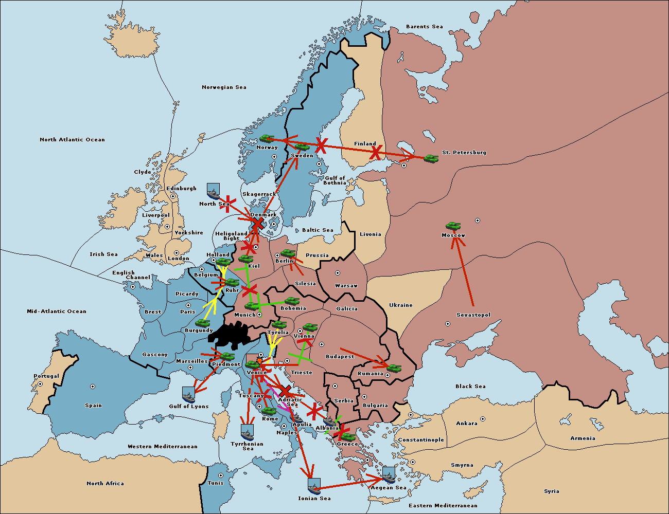 The fleet at Adriatic Sea support move to Venice from Tyrolia.