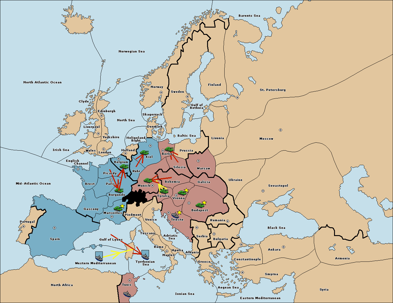 The fleet at Mid-Atlantic Ocean move to Western Mediterranean.