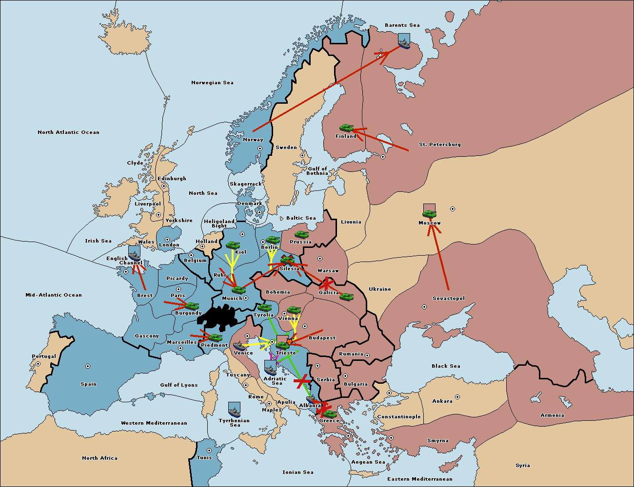 The army at Tyrolia move to Trieste.