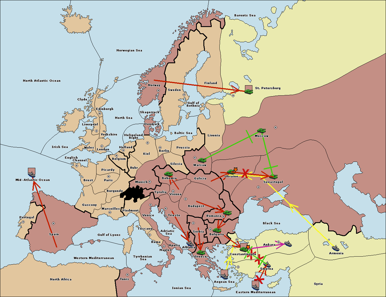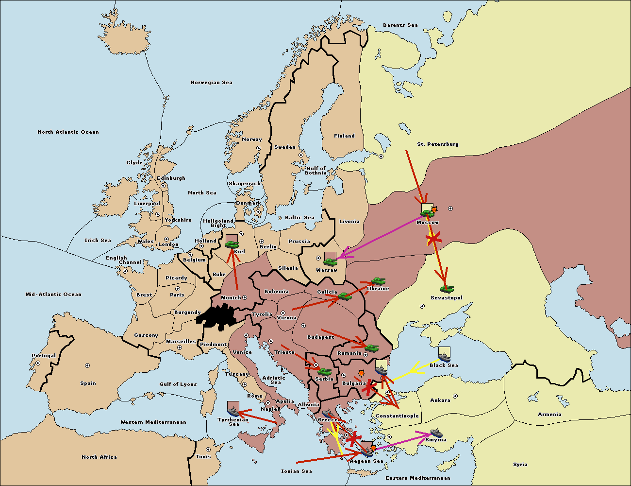 The fleet at Black Sea support move to Bulgaria from Constantinople.