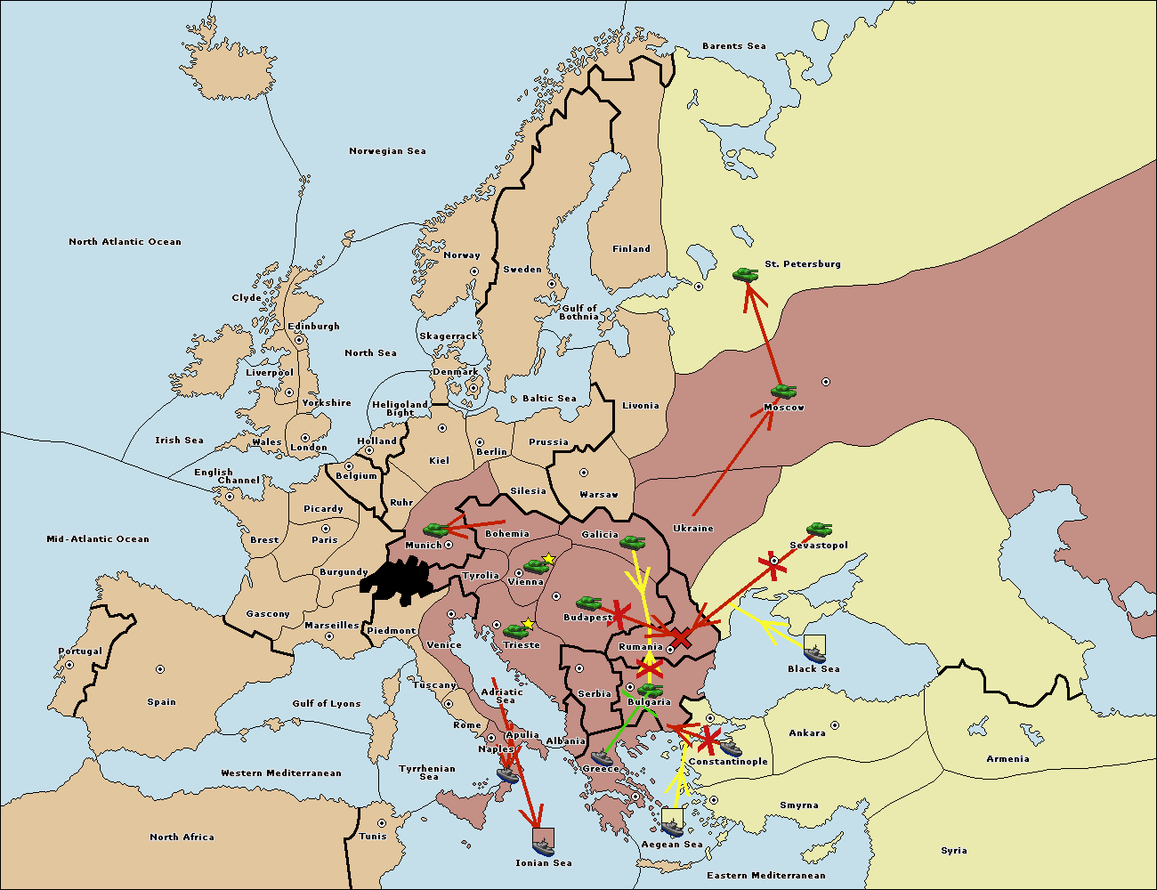 The fleet at Bulgaria (North Coast) move to Rumania.