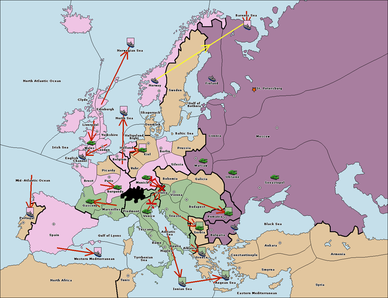 The fleet at Bulgaria (North Coast) move to Constantinople.