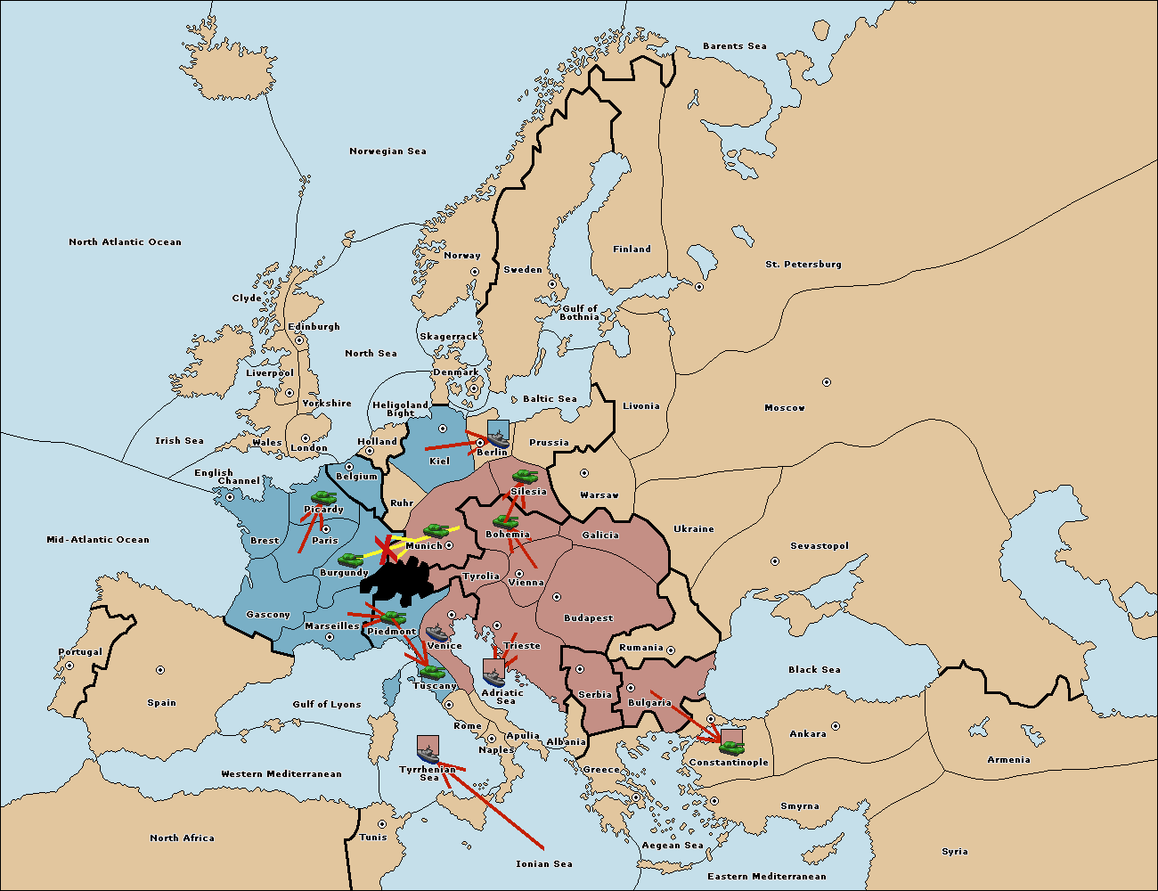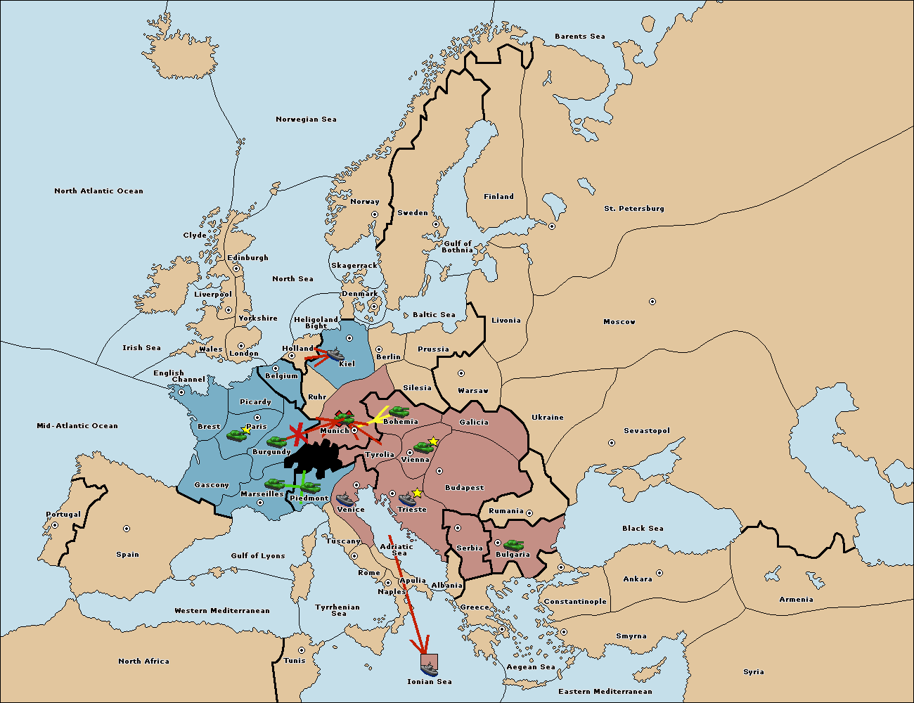 The fleet at Ionian Sea move to Tyrrhenian Sea.