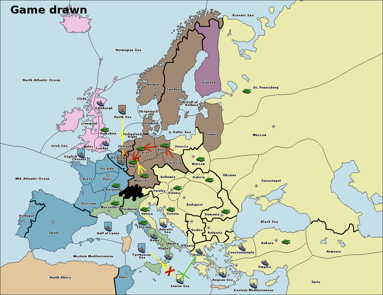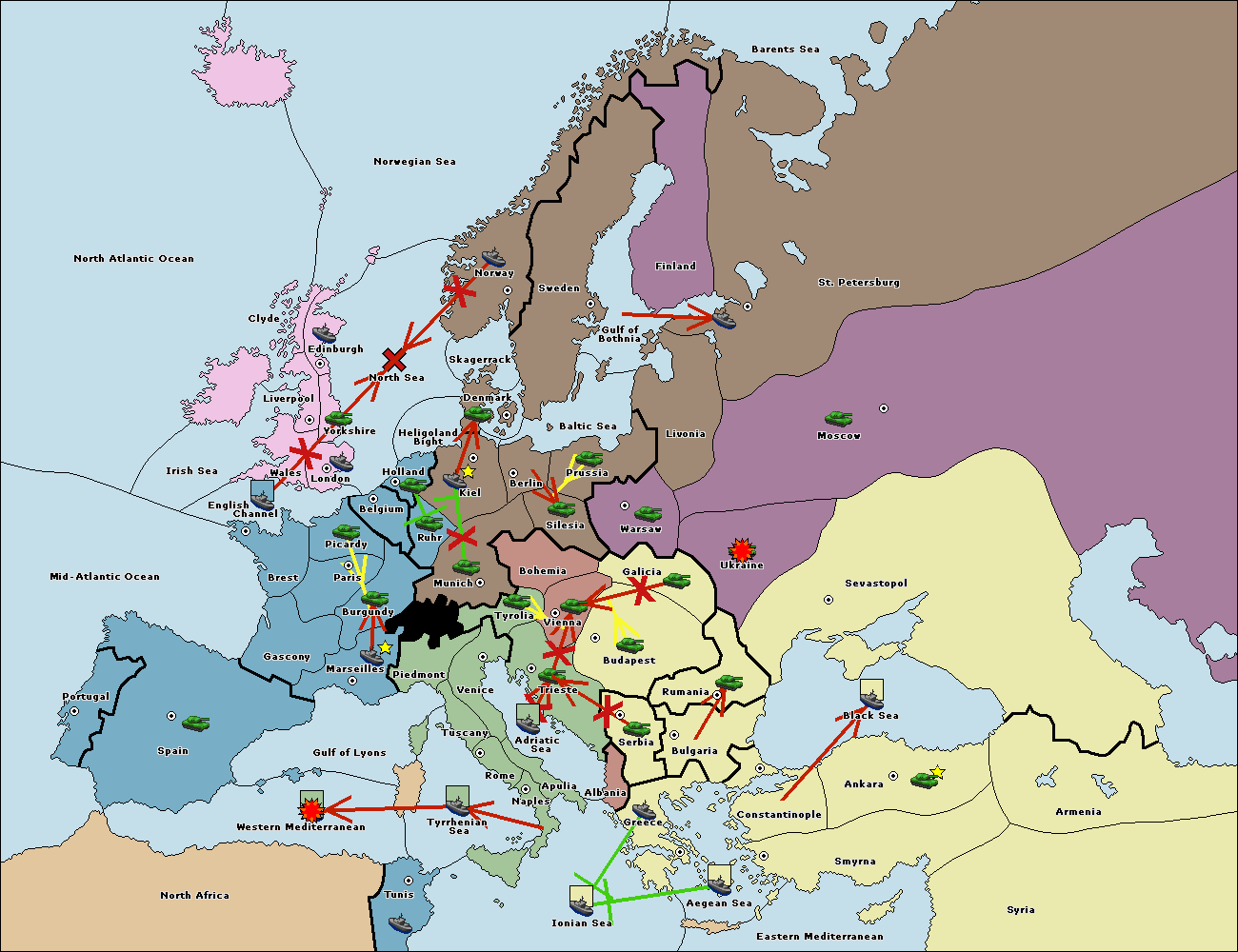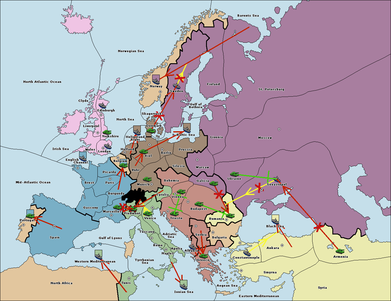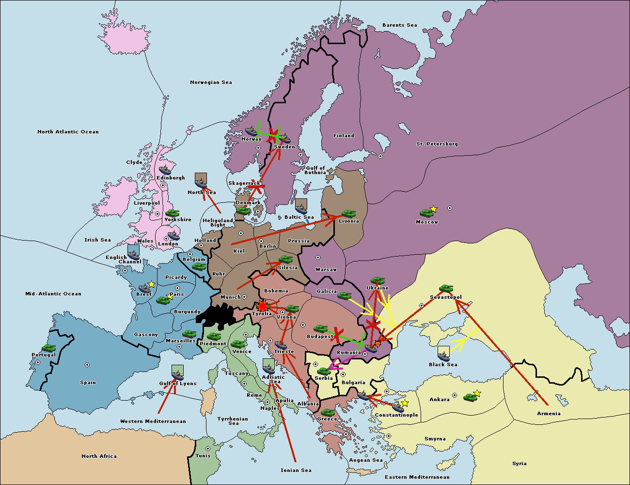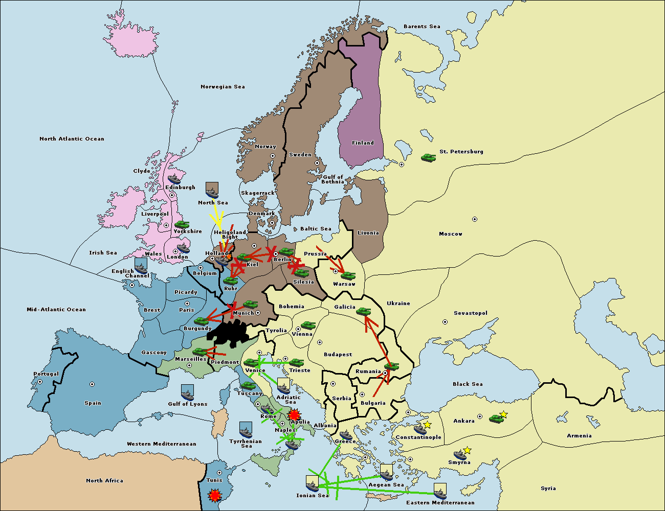 The fleet at Bulgaria (South Coast) move to Greece.