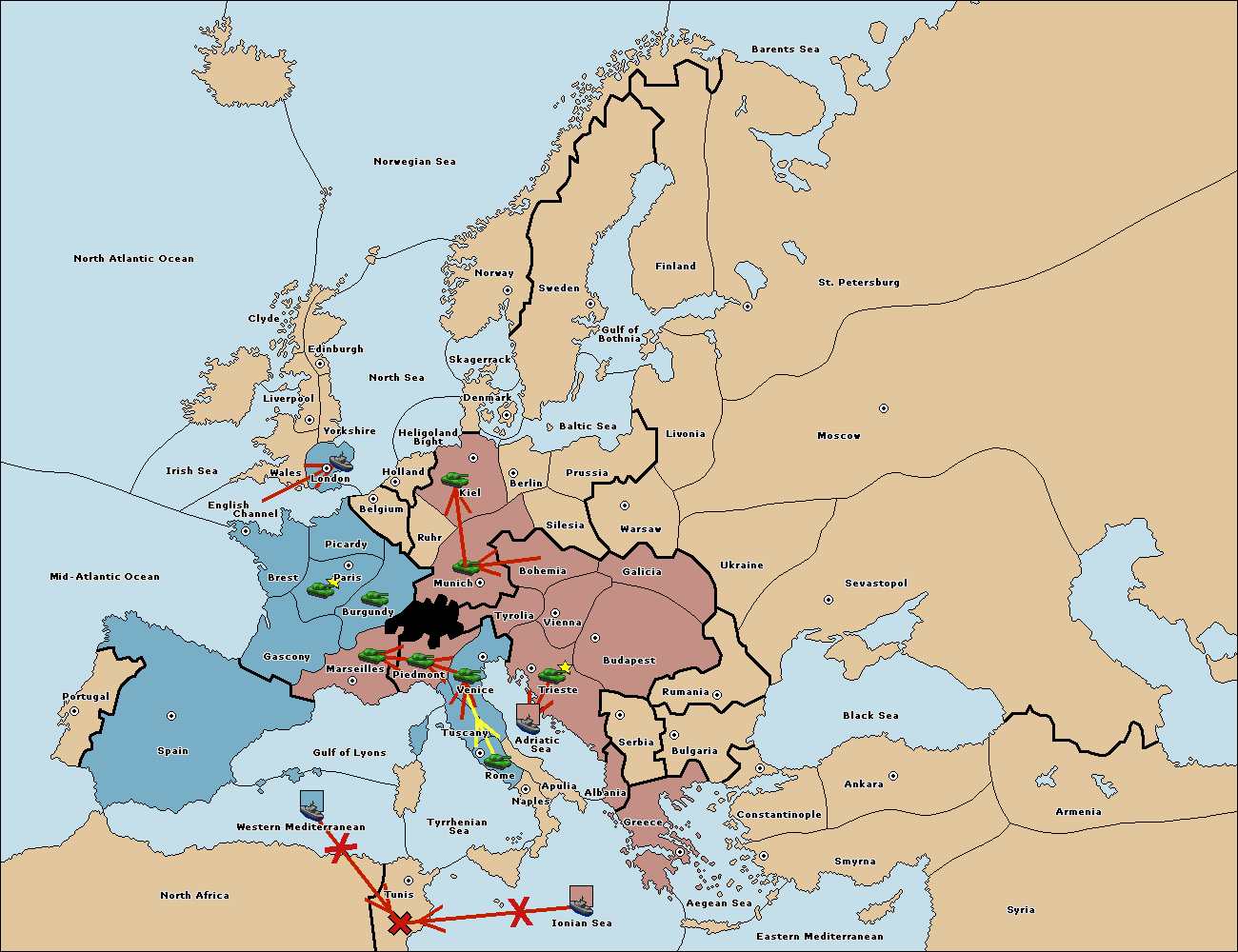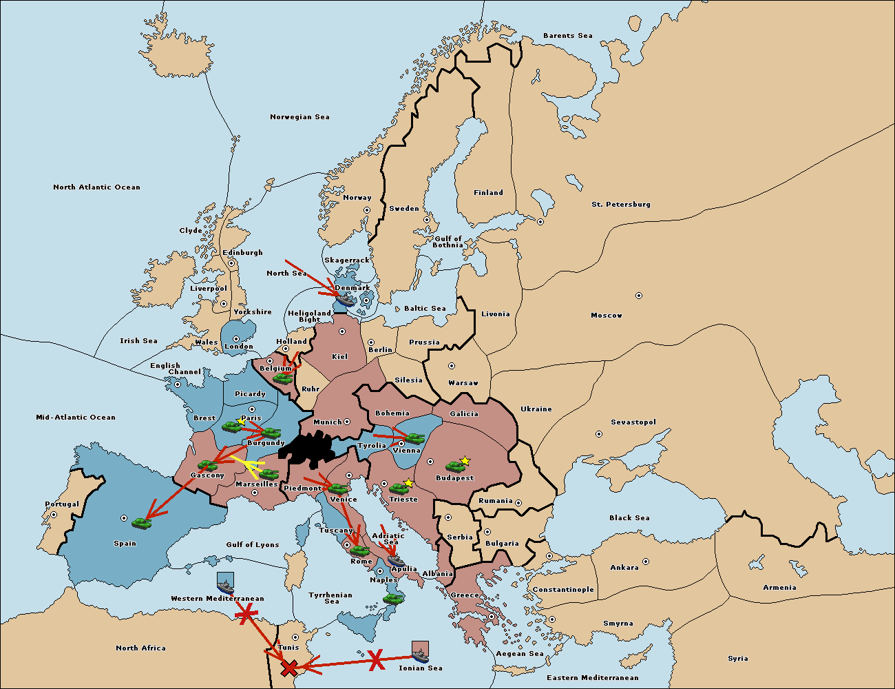 The fleet at Spain (South Coast) move to Western Mediterranean.