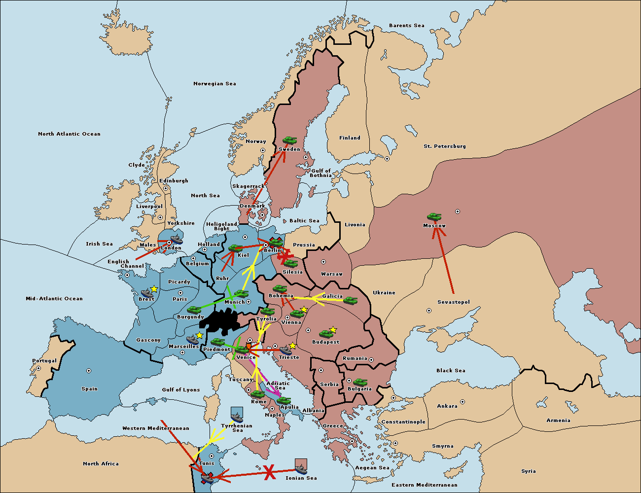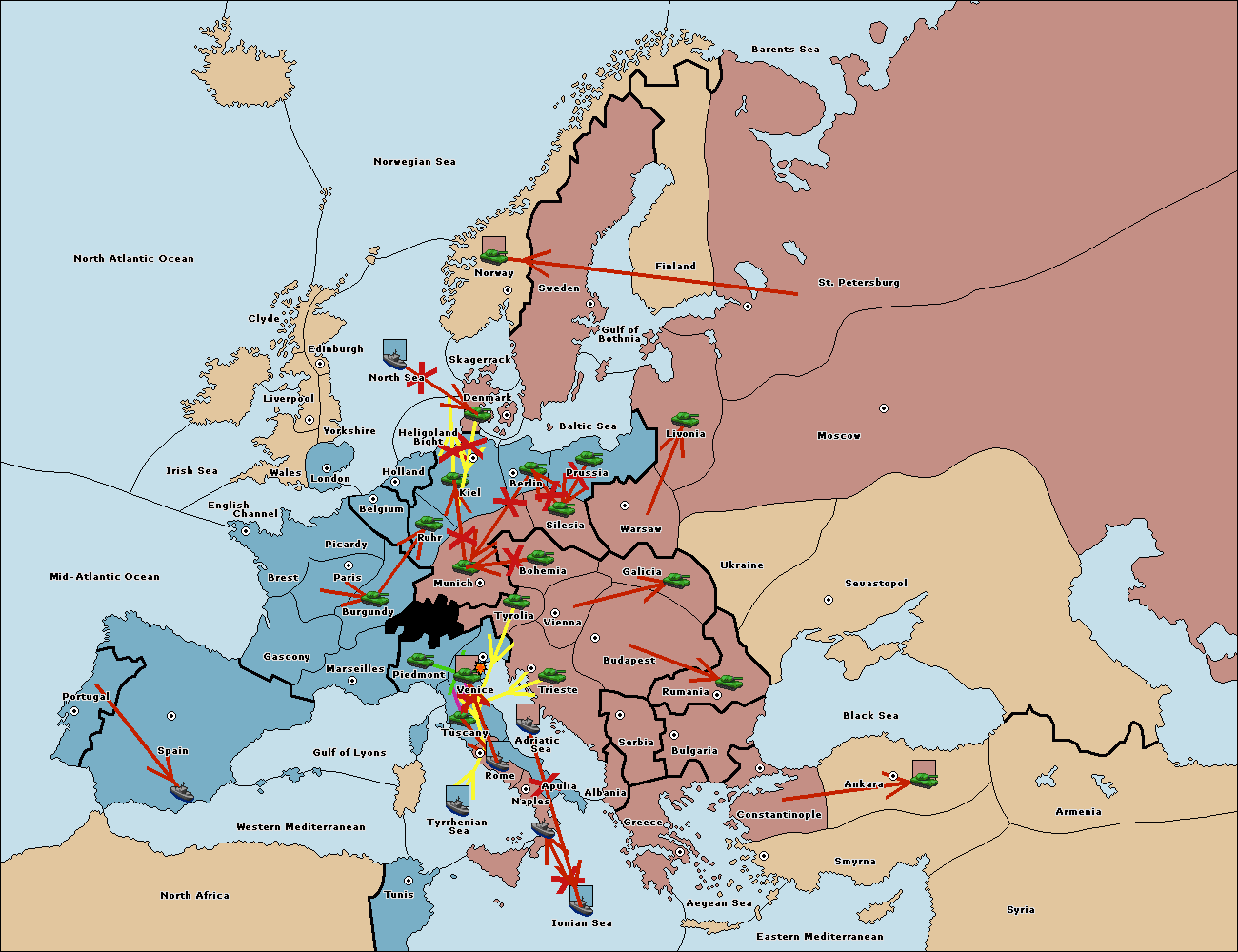 The fleet at Tyrrhenian Sea support move to Naples from Ionian Sea.